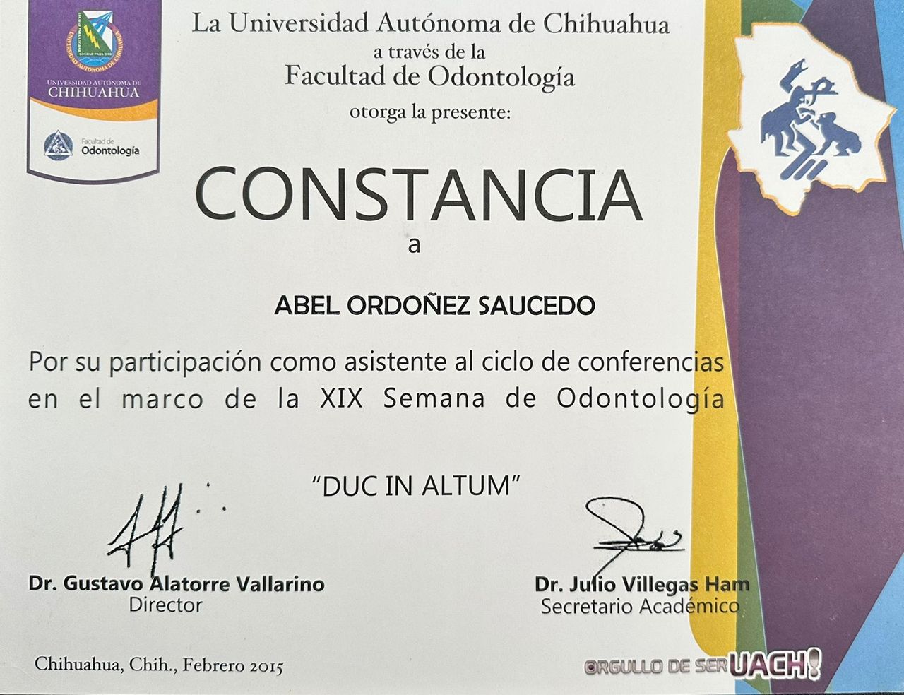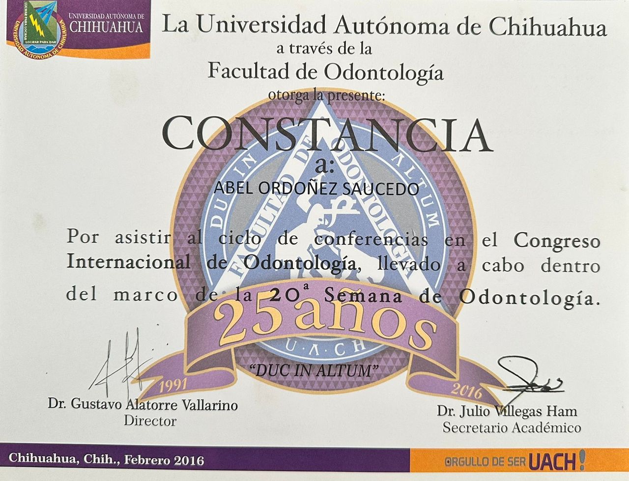 Cirujano Dentista egresado de la Universidad Autónoma de Chihuahua, Facultad de Odontología.