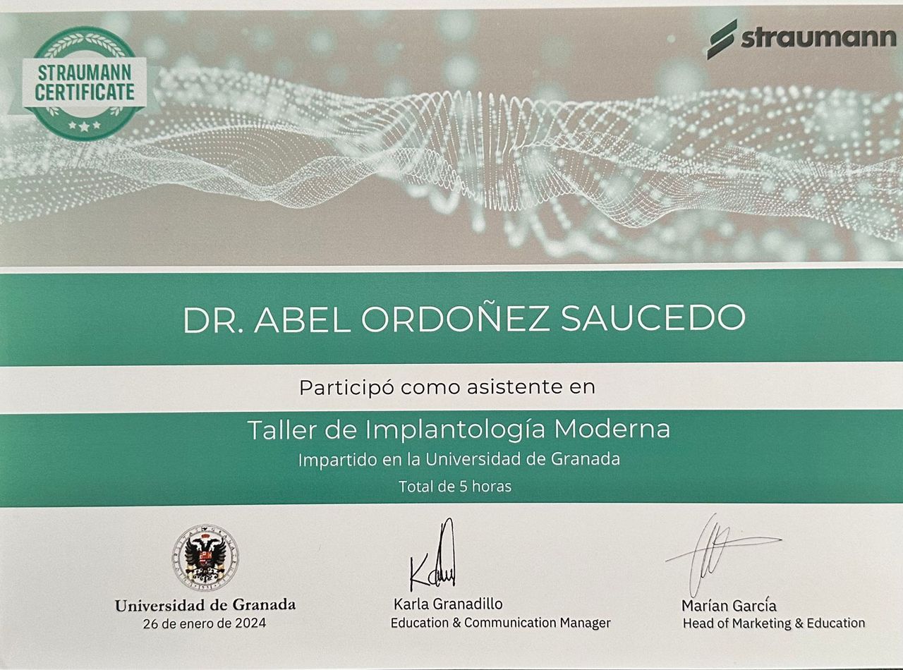 Especialidad y Master en Rehabilitación Avanzada e Implantología Oral en la Universidad de Granada, España