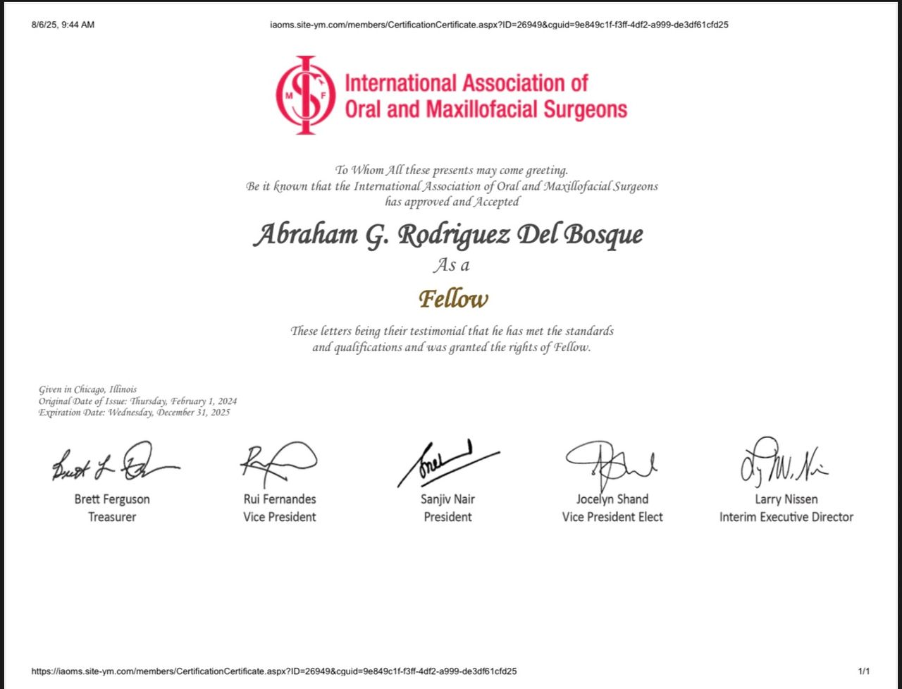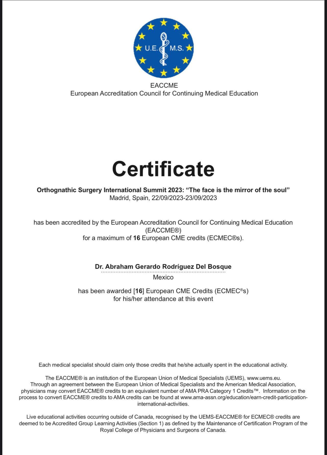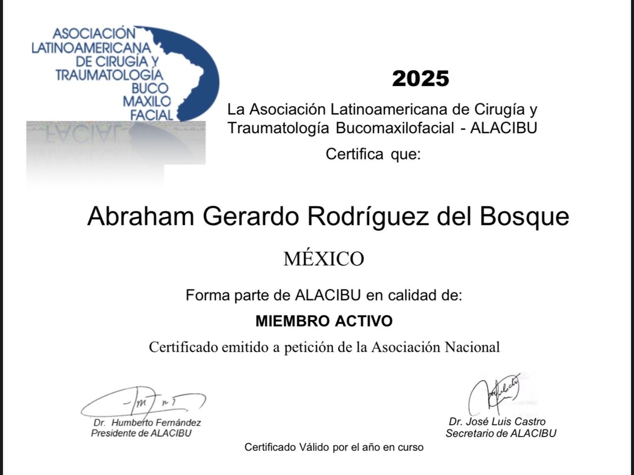 Número de Certificado por el Consejo Mexicano de Cirugía Oral y Maxilofacial: 888