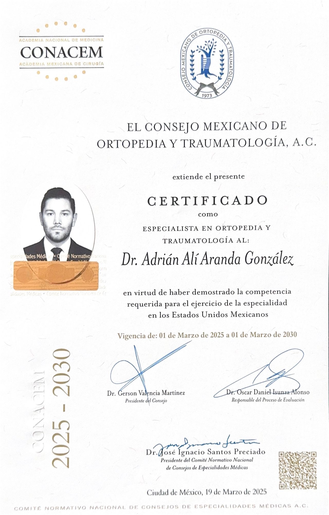 Soy médico con especialidad en Traumatología y Ortopedia, y alta especialidad en Artroscopia y Lesiones Deportivas. Me enfoco en el diagnóstico y tratamiento de lesiones músculo-esqueléticas, particularmente en pacientes activos y deportistas que buscan recuperar su función de manera segura, precisa y efectiva.
