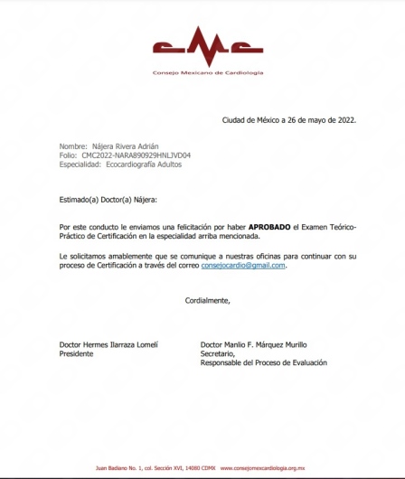 Soy cardiólogo con alta especialidad en ecocardiografía de adultos y estoy certificado por el Consejo Mexicano de Cardiología.