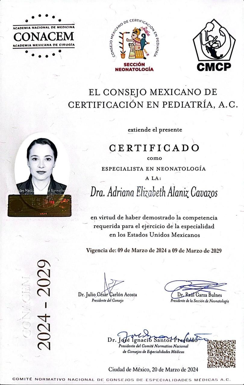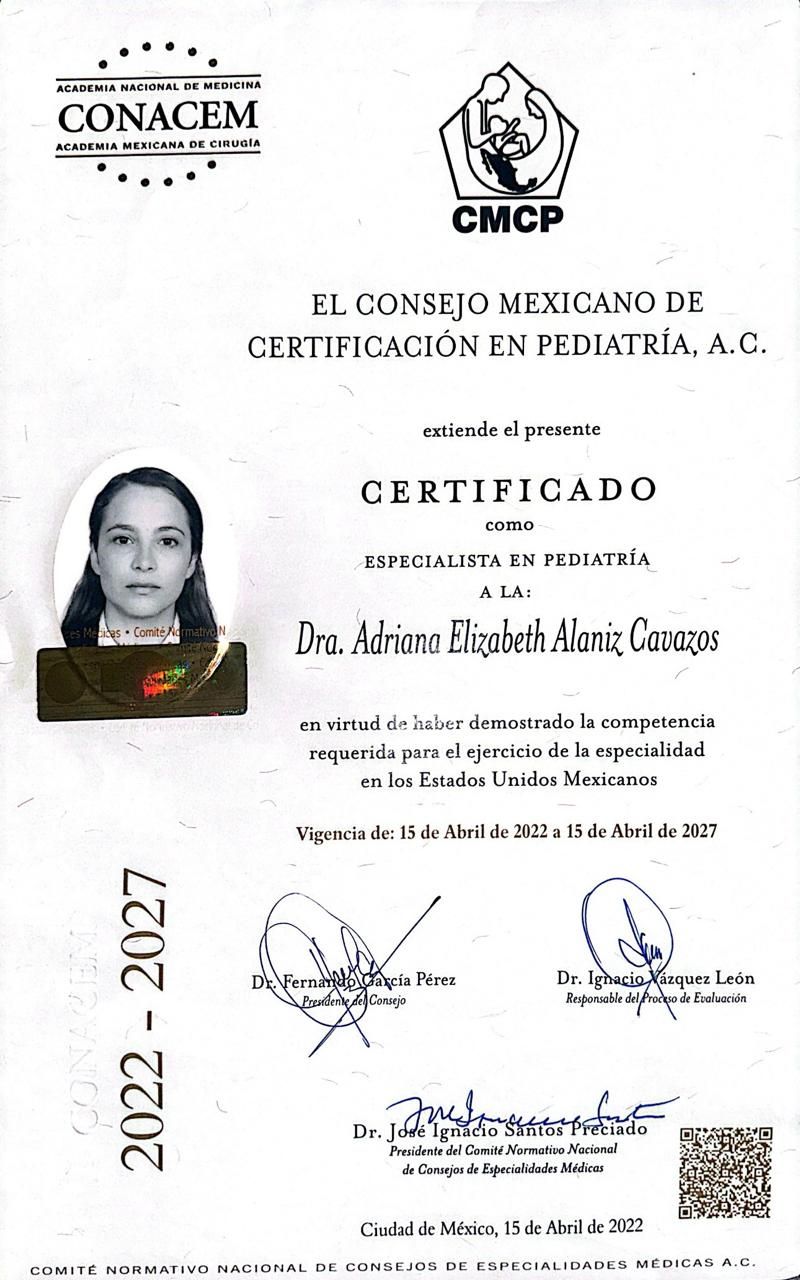 Hola, Soy la Dra. Adri, médico pediatra con subespecialidad en neonatología, certificada por consejos mexicanos de pediatría y neonatologia, socia activa de asociacionismo mexicana de pediatría y neonatología de la Ciudad de México.