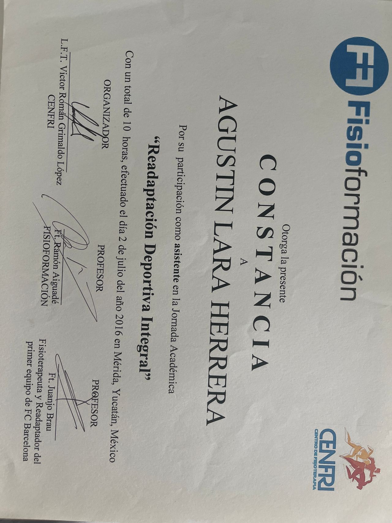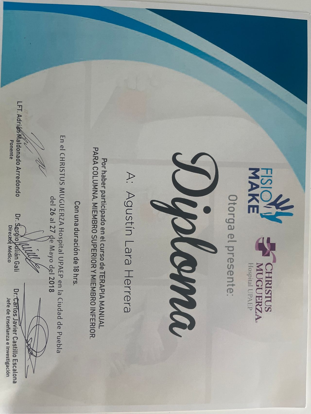 Tuve un esguince en el hombro y acudí con el fisioterapeuta Agustín Lara. Desde la primera sesión mostró profesionalismo, conocimiento y un trato muy humano. Me explicó con claridad mi lesión, el proceso de recuperación y trabajamos con ejercicios personalizados y terapia manual. Gracias a su seguimiento constante y su atención, logré una recuperación completa.