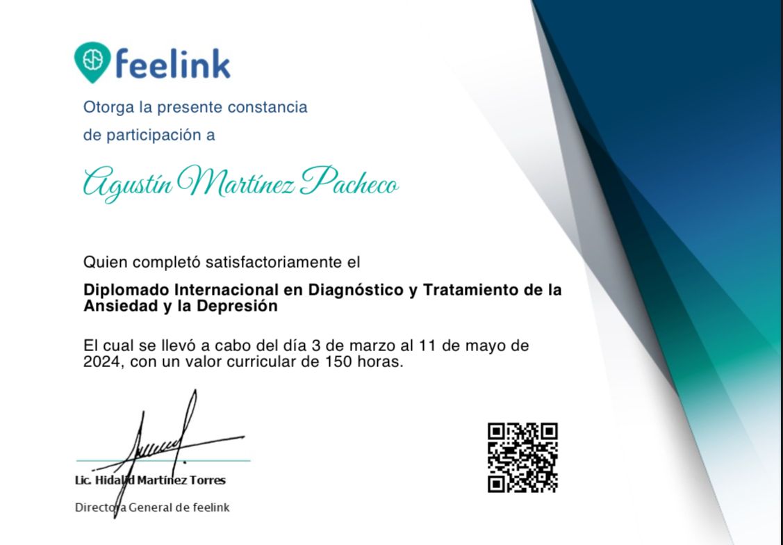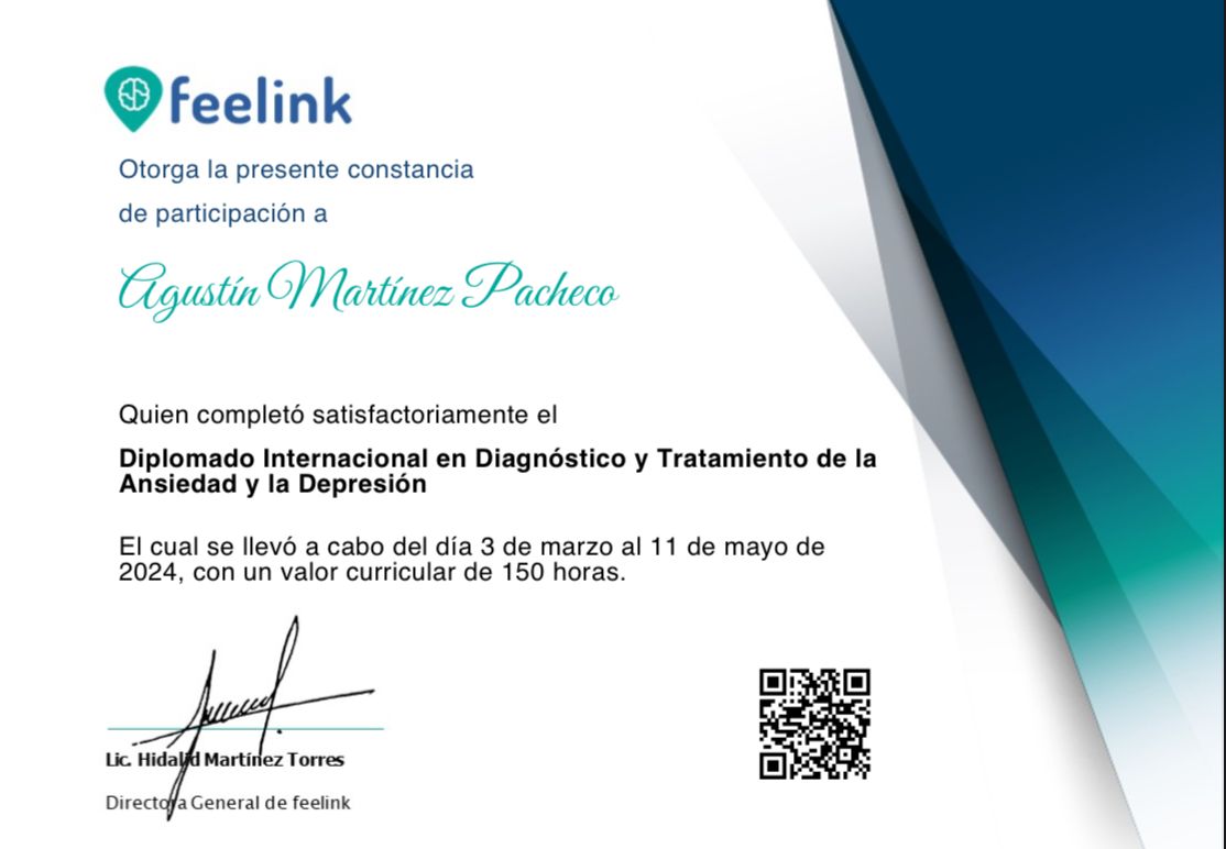 Agustín es un Psicólogo muy preparado y profesional en su área, te hace sentirte siempre en un lugar cómodo para expresarte sin sentirte juzgado en ningún momento, te da las herramientas para salir adelante y de la mano te ayuda a mejorar/crecer personalmente, social, y cualquier aspecto que busques, 1000% recomendada su terapia, dense la oportunidad de ser mejores con ayuda de un profesional como el