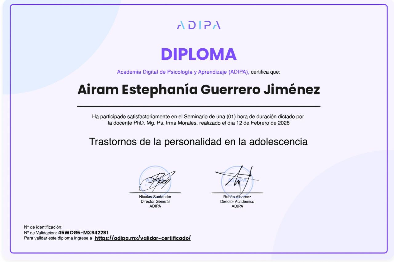 Hola, soy Lic. Airam Guerrero, soy licenciada en Psicología con enfoque clínico cognitivo conductual, egresada de la Facultad de Psicología de la UANL.