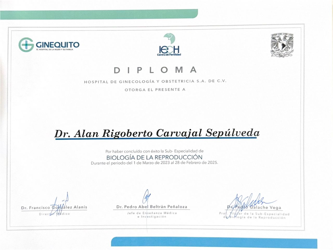 •Sub especialidad en Biología de la Reproducción (Fertilidad).