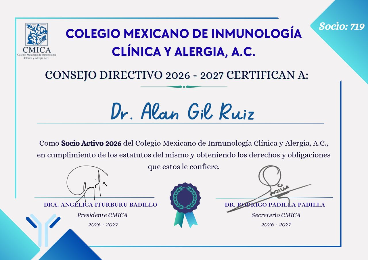 Hola, soy el Dr. Alan Gil Ruiz. Sé lo frustrante que puede ser vivir con la incertidumbre de una alergia o con síntomas que limitan tu día a día. Mi objetivo como especialista en Alergia e Inmunología Clínica es ayudarte a recuperar el control de tu salud y mejorar tu calidad de vida.