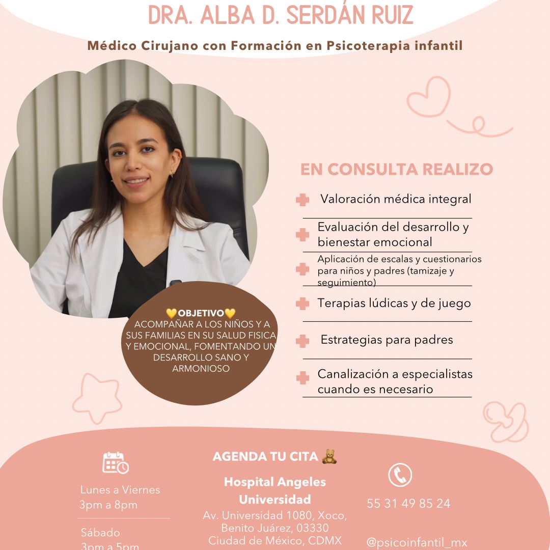 Soy la Dra. Alba Serdán, médico general con formación en psicoterapia infantil.