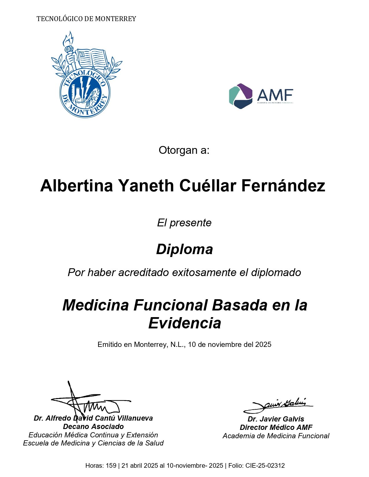 Cuento con un diplomado en Colposcopia y Patología del Tracto Genital Inferior con aval por la UNAM. Realice un diplomado en Medicina Funcional y manejo de Sd Ovario Poliquistico y Tiroides. Cuento con un Master en Menopausia. Cuento con un diplomado en Nutrición y Salud Menstrual
