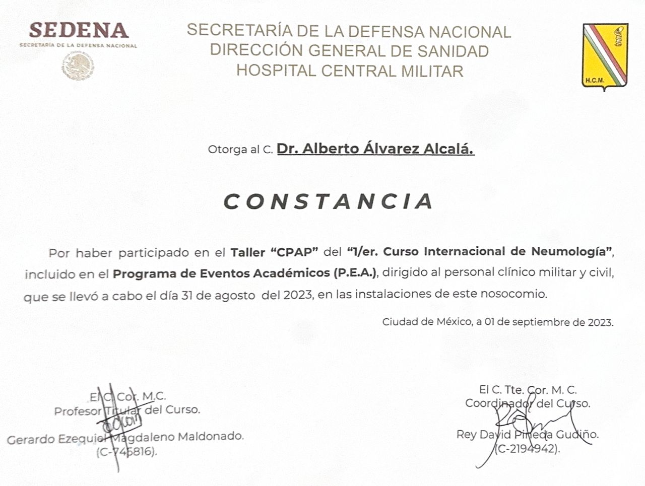 -Neumólogo certificado por el consejo nacional de Neumología AC Broncoscopia y medicina pleural