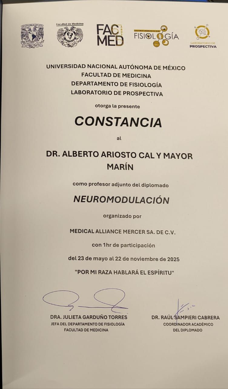 78 opinionesDr. Alberto Ariosto Cal y Mayor Marín es Médico Cirujano, Psiquiatra , cuenta con Posgrado de Alta Especialidad en Trastornos de la Conducta Alimentaria por el Instituto Nacional de Psiquiatría . Certificado por el Consejo Mexicano de Psiquiatría y miembro de la Asociación Psiquiátrica Mexicana.