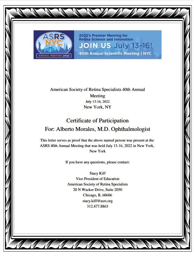 Subespecialista en Retina Médica y Quirúrgica lo que me permite brindar atención especializada a pacientes con casos difíciles o complicados.