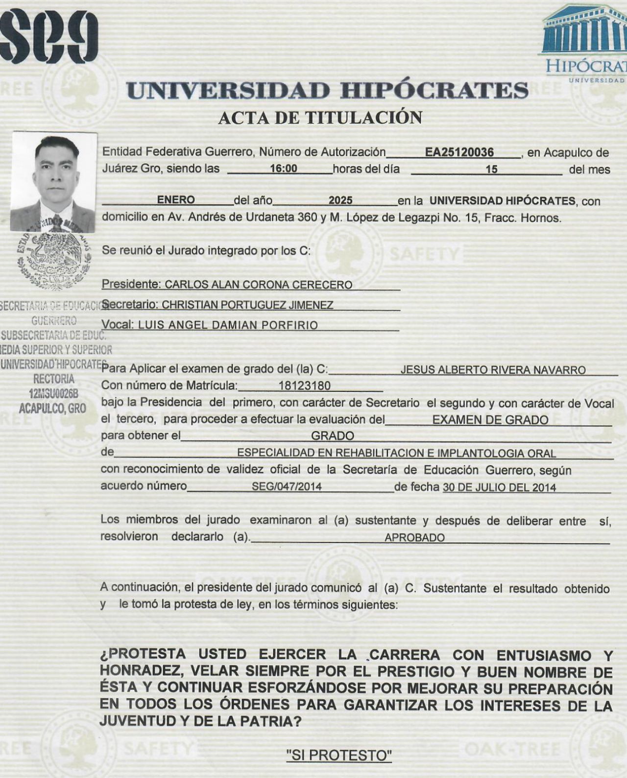 Hola bienvenido a mi perfil. Soy Cirujano Dentista egresado de la UNAM desde el año 2003, tengo mas de 20 años de experiencia en diferentes áreas de la odontología. Me gustaría atender y solucionar tus problemas dentales, pero sobre todo ayudarte a evitar algún malestar mediante la prevención oportuna en tus tratamientos.