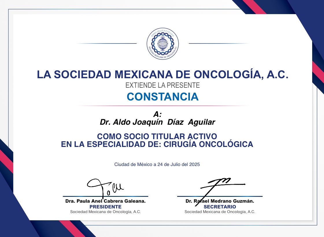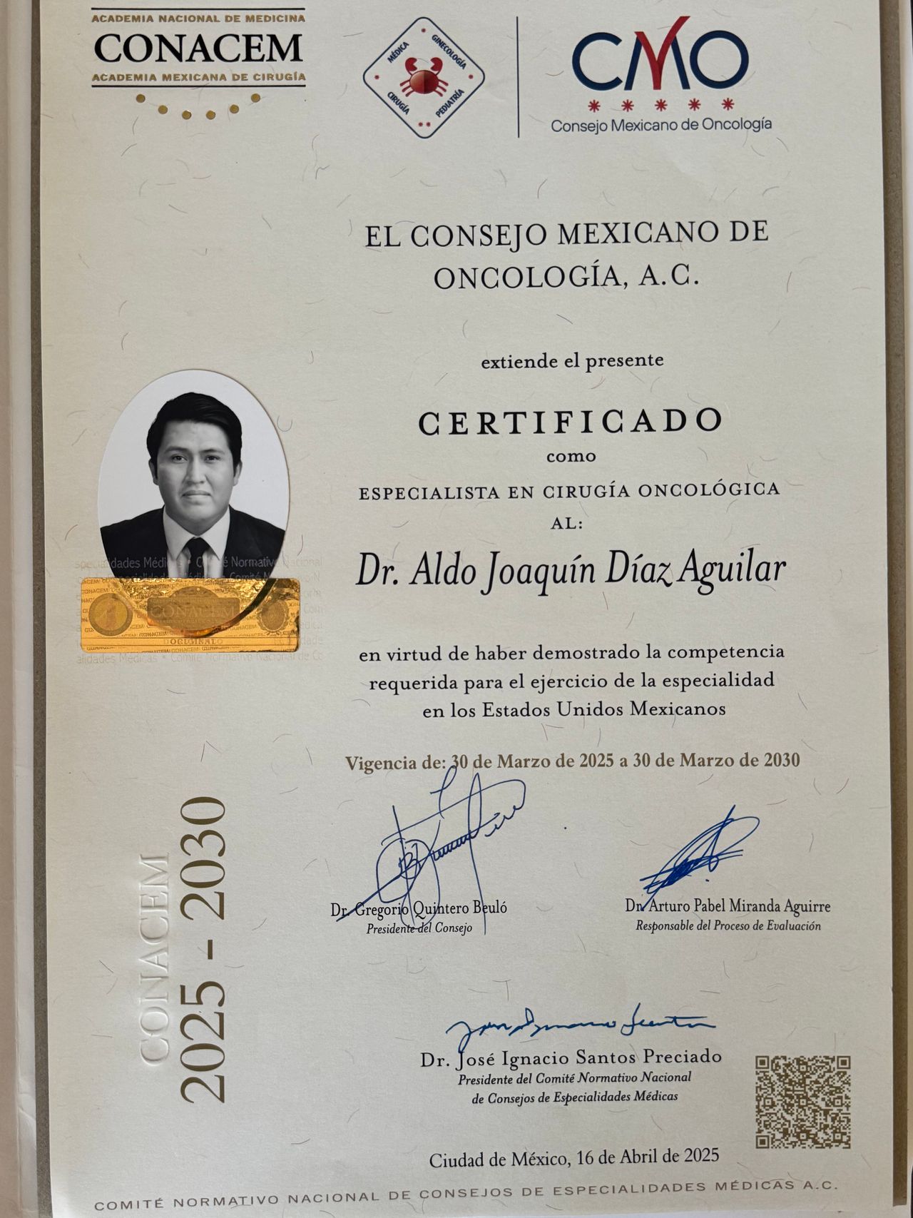 Soy el Dr. Aldo Díaz, Subespecialista en Cirugía Oncológica.