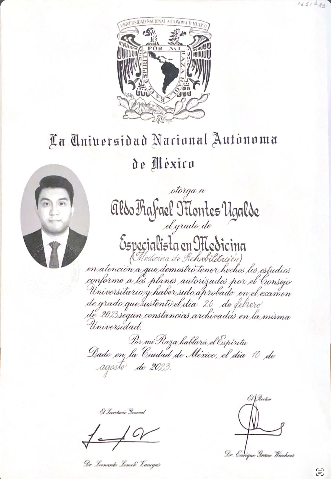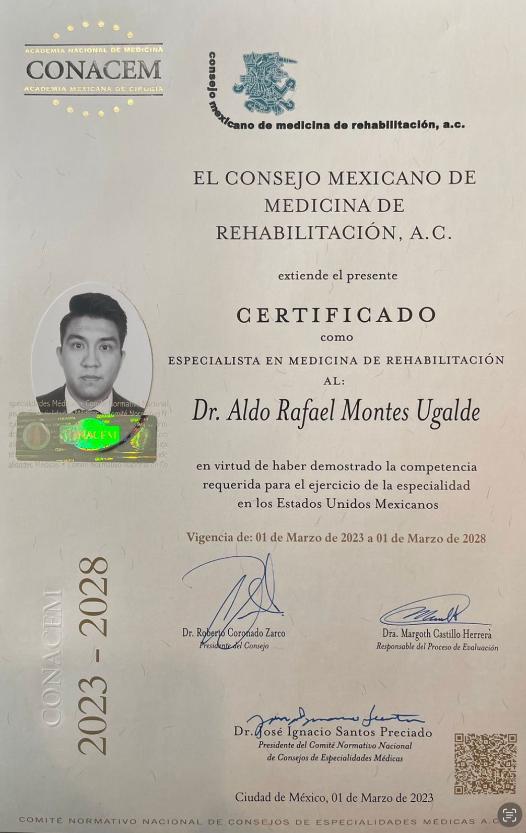 Hola! Soy el Dr. Aldo Montes, Médico Especialista en Medicina de Rehabilitación. Sera un gusto poder brindarle la mejor atención medica en su padecimiento.