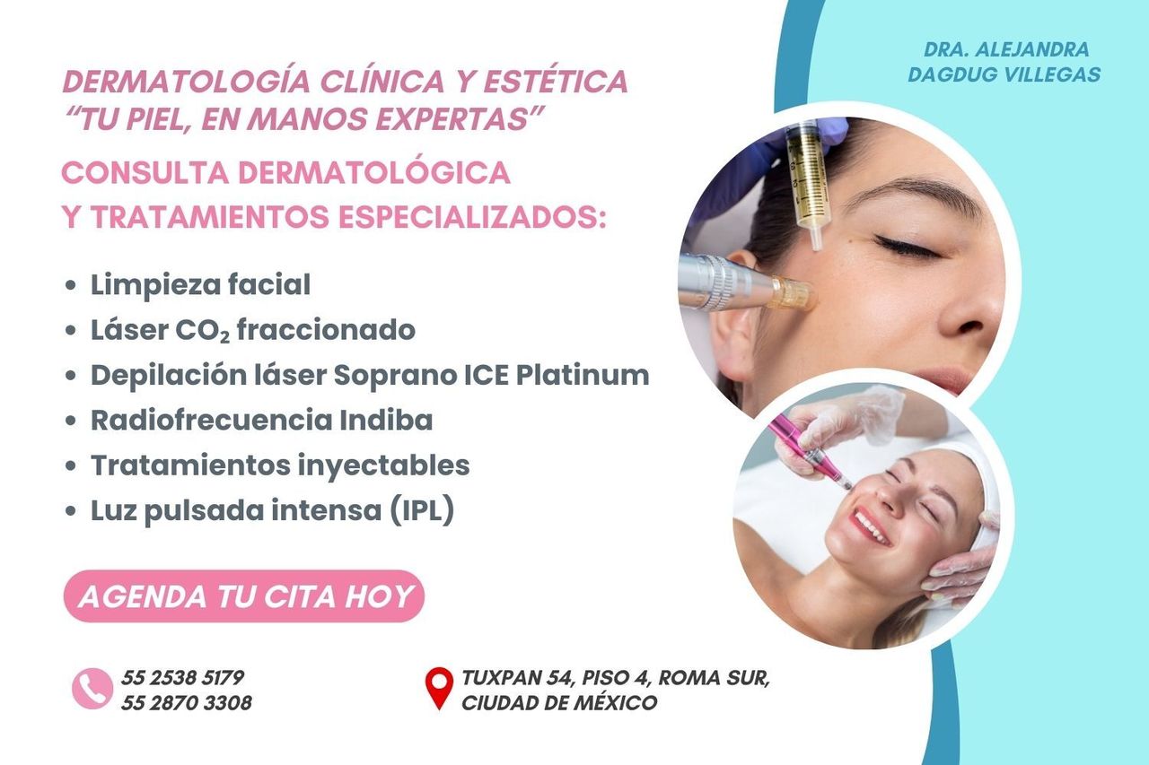 Excelente dermatóloga: muy profesional, con diagnósticos acertados y tratamientos efectivos. Totalmente recomendada.• Roma Sur • Luz Pulsada Intensa para tratamiento de melasma, acné, rosácea y rejuvenecimiento •