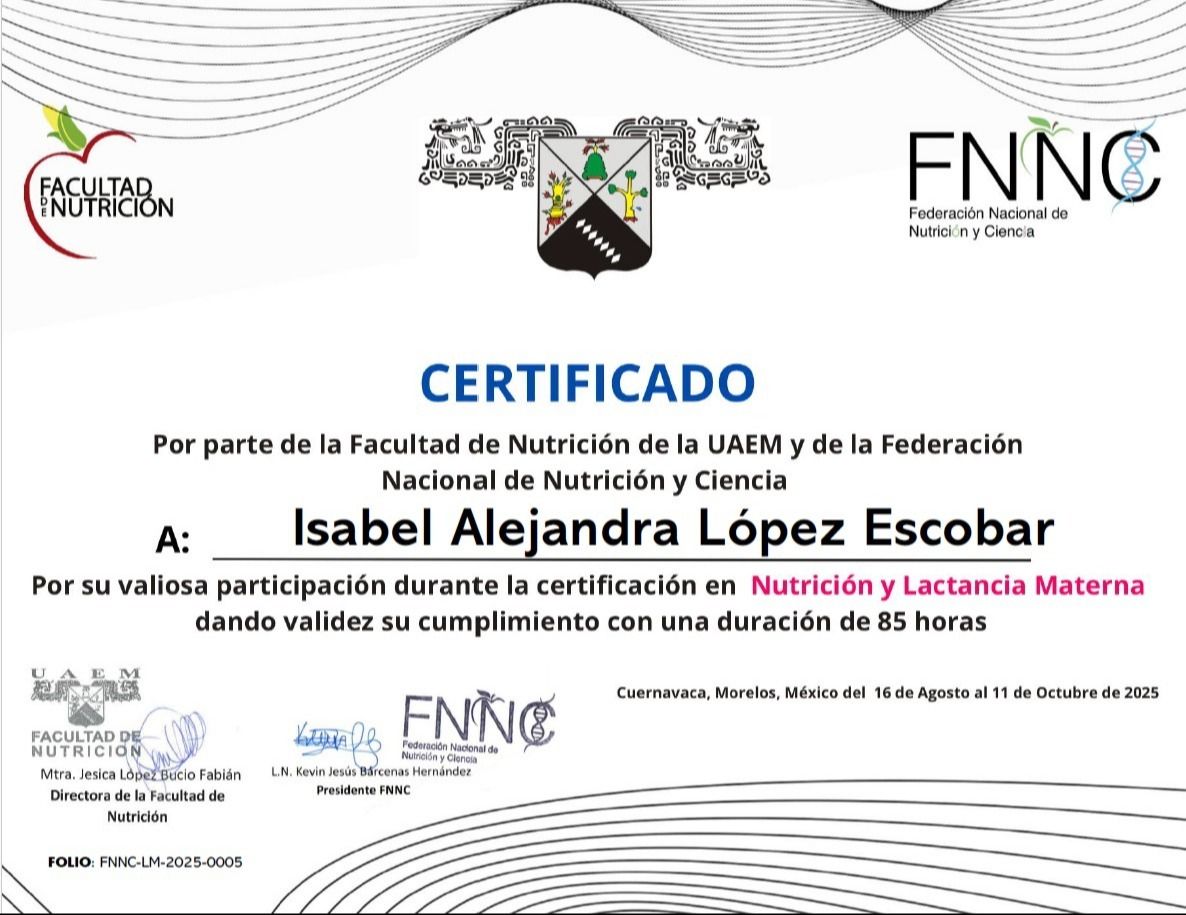 Mi trayectoria incluye una valiosa experiencia en el Instituto Nacional de Cardiología "Ignacio Chávez" (INCICh), donde pude profundizar en la importancia de la nutrición en la prevención y manejo de enfermedades cardiovasculares.