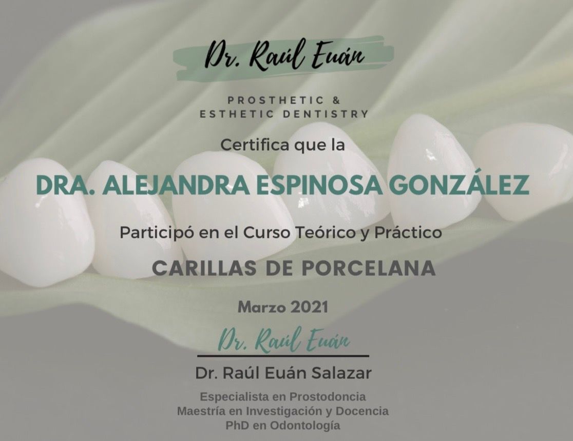 Soy la Dra. Alejandra Espinosa González, odontóloga enfocada en la prevención, diagnóstico y tratamiento integral de la salud bucal.