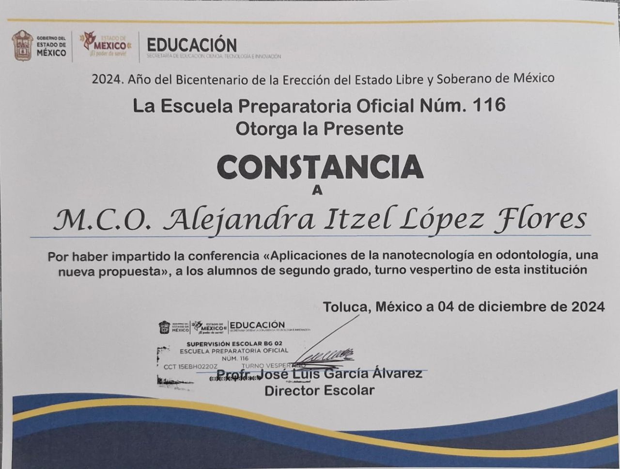 Soy la Dra. Alejandra López, soy egresada de la Facultad de Odontología de la Universidad Autónoma del Estado de México, cuento con más de 8 años de experiencia en la práctica privada. Cuento con la Maestría en Ciencias Odontológicas y actualmente me encuentro realizando el Doctorado en Ciencias de la Salud en el área de biomateriales dentales. Mi objetivo como profesional en el área de la salud es realizar un tratamiento de calidad, ya que creo firmemente en la odontología basada en evidencia, me aseguro de brindar una buena atención y establecer una adecuada comunicación con mis pacientes. Trabajo de la mano con un grupo de especialistas en Endodoncia, Cirugía Maxilofacial, Ortodoncia y Odontopediatría para brindarte un servicio de calidad si requieres algún tratamiento especializado. Me encuentro encantada de recibirte en mi consultorio basándome en una atención de calidad y respeto mutuo, te ofreceré la confianza de resolver todas tus dudas, antes, durante y después de realizar tu tratamiento conmigo.