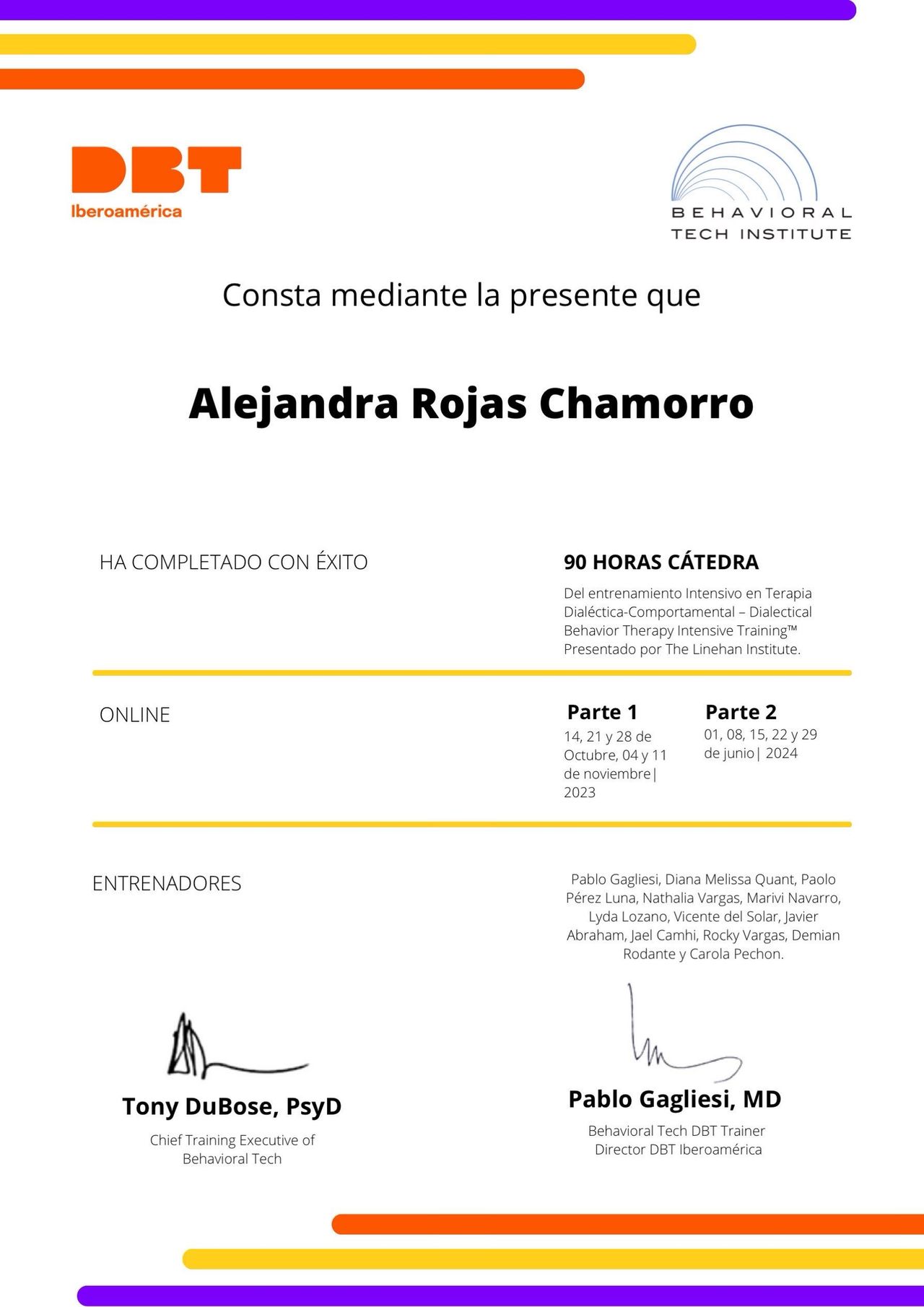 Soy Alejandra Rojas, médica especialista en Psiquiatría con formación en Terapia Dialéctico Conductual (DBT). Ofrezco un enfoque integral que combina la evaluación médica, la atención a los síntomas físicos y emocionales, y el uso de estrategias terapéuticas basadas en evidencia.
