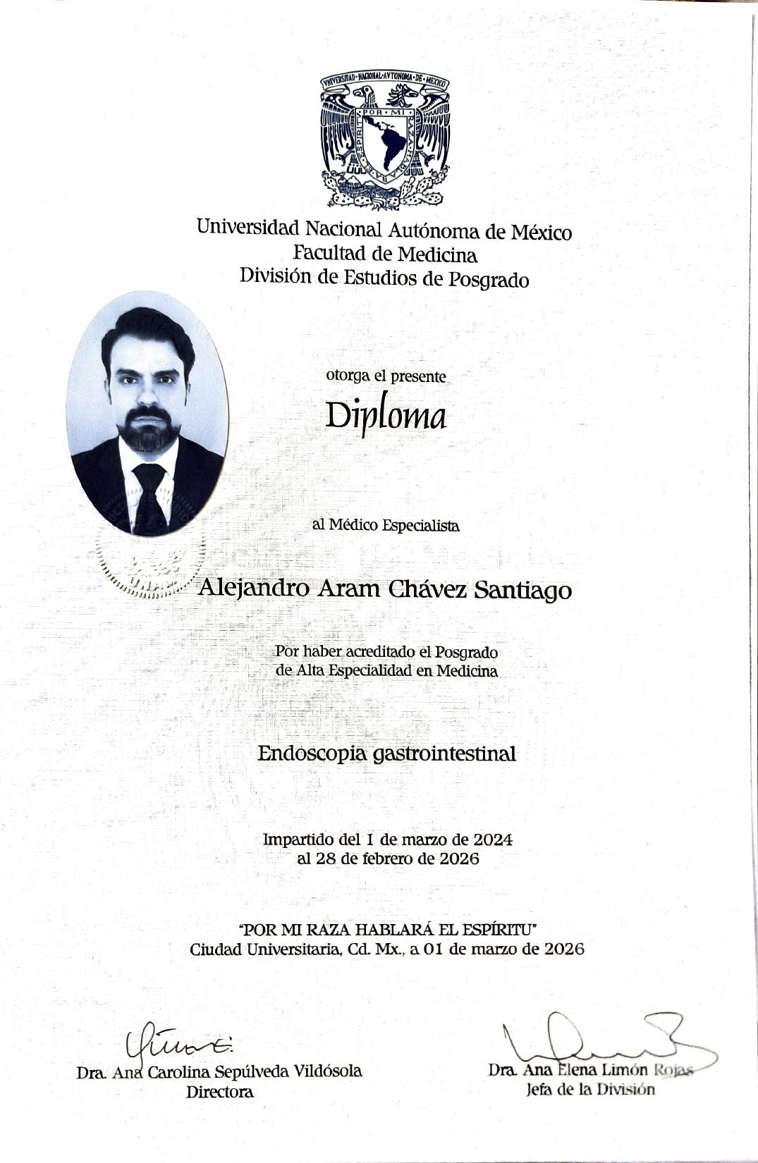 Soy el Dr. Alejandro Aram Chávez Santiago, gastroenterólogo certificado por el Consejo Mexicano de Gastroenterología, con formación por la UNAM y máster en Neurogastroenterología por la Universidad de Barcelona.