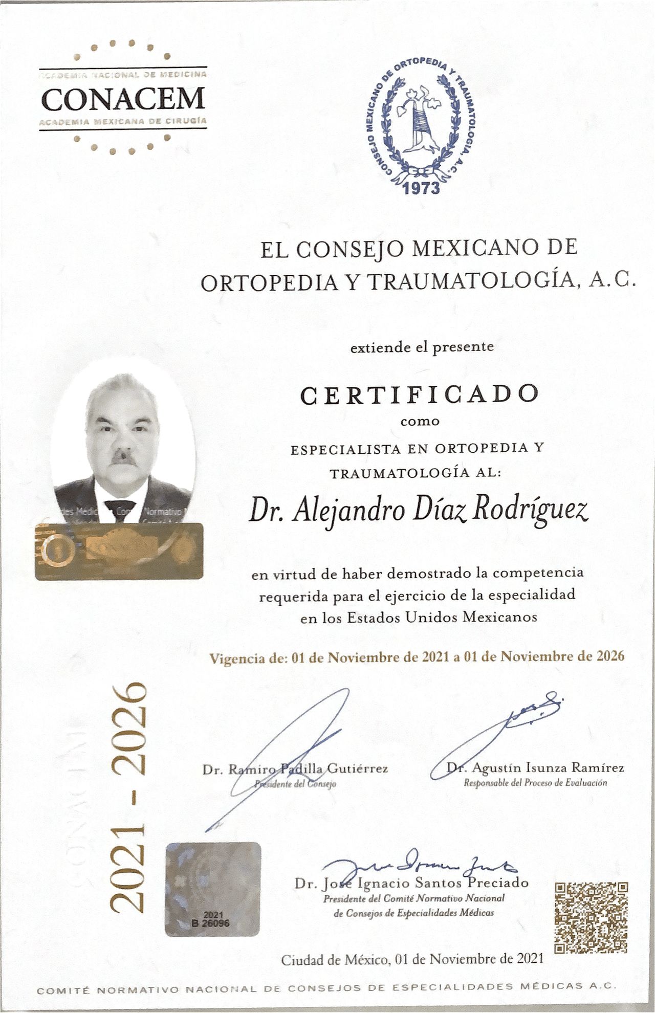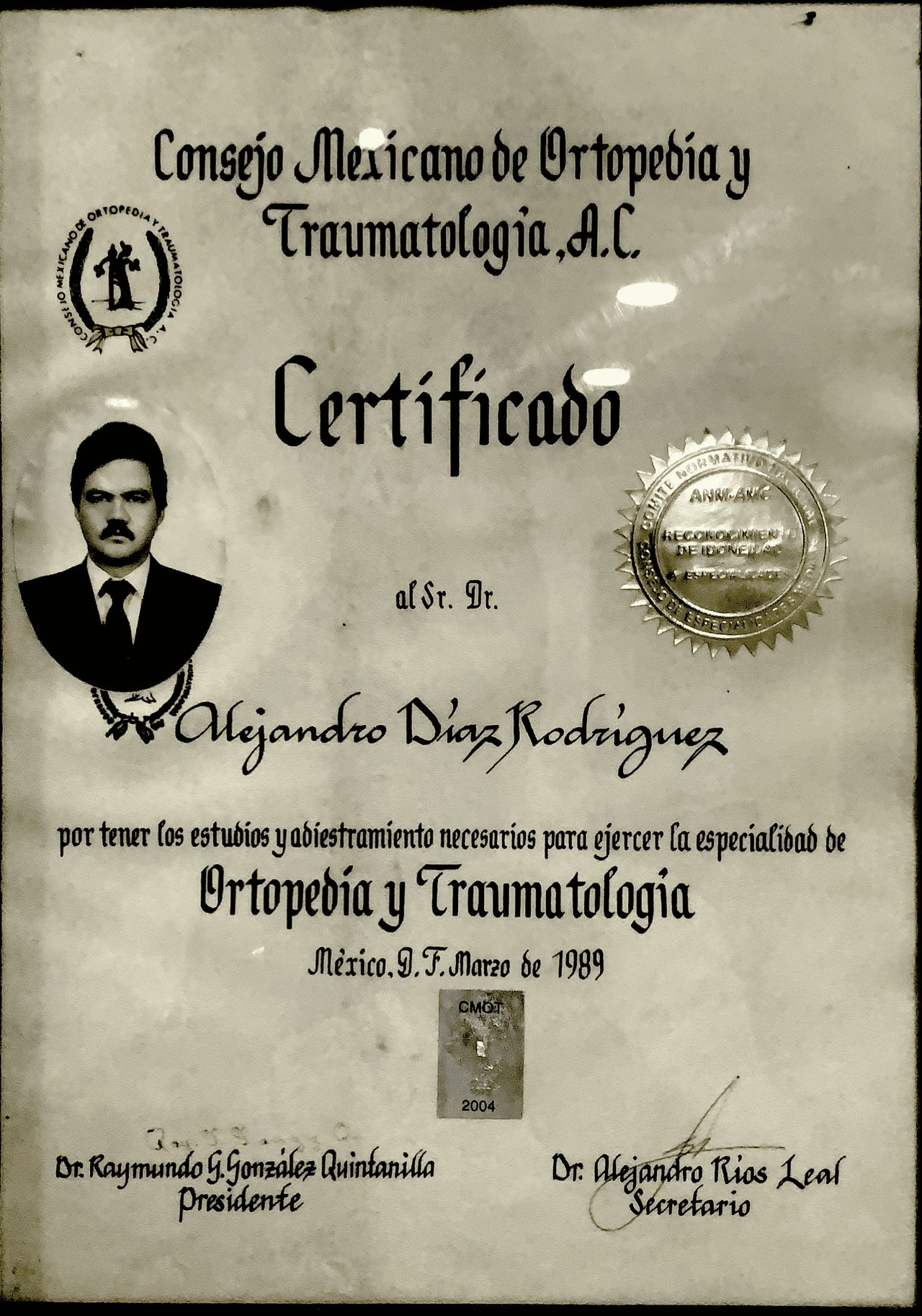 Certificado por el Consejo Mexicano de Ortopedia y Traumatología, A.C. (CMOT).