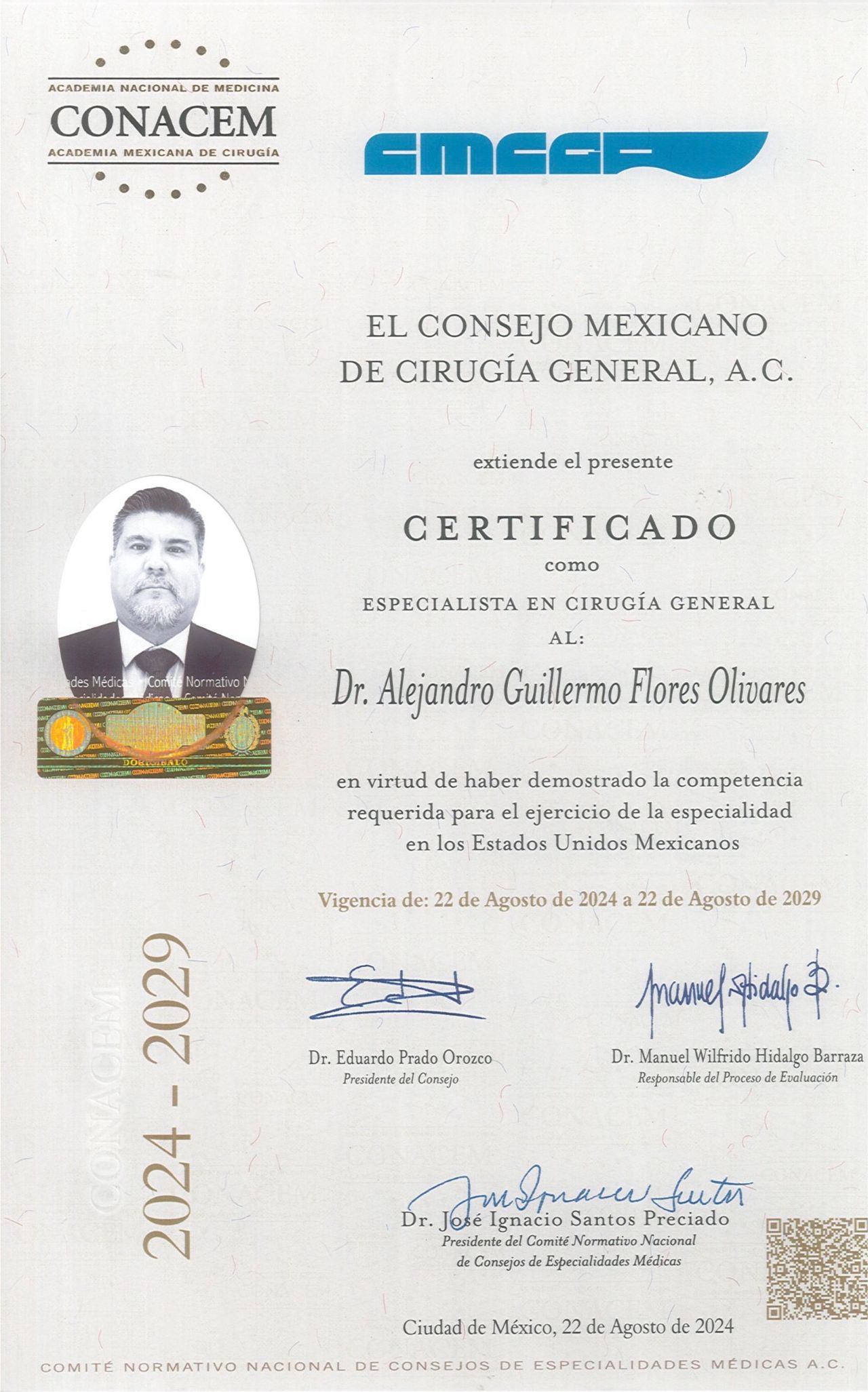 Egresado de la especialidad de Cirugía General del Centro Médico Nacional Torreón del IMSS, contamos ya con 23 años de experiencia en este ámbito; así como 18 años en el campo de la Cirugía Bariátrica. Desde hace 18 años totalmente inmersos en el mundo de la cirugía mínimamente invasiva, donde nos hemos convertido en uno de los grupos líderes en Laparoscopía Avanzada de la región, incluso siendo; desde hace 9 años Maestro de Laparoscopia Avanzada de algunos de los cirujanos egresados de los centros formadores de especialistas más importantes del país.