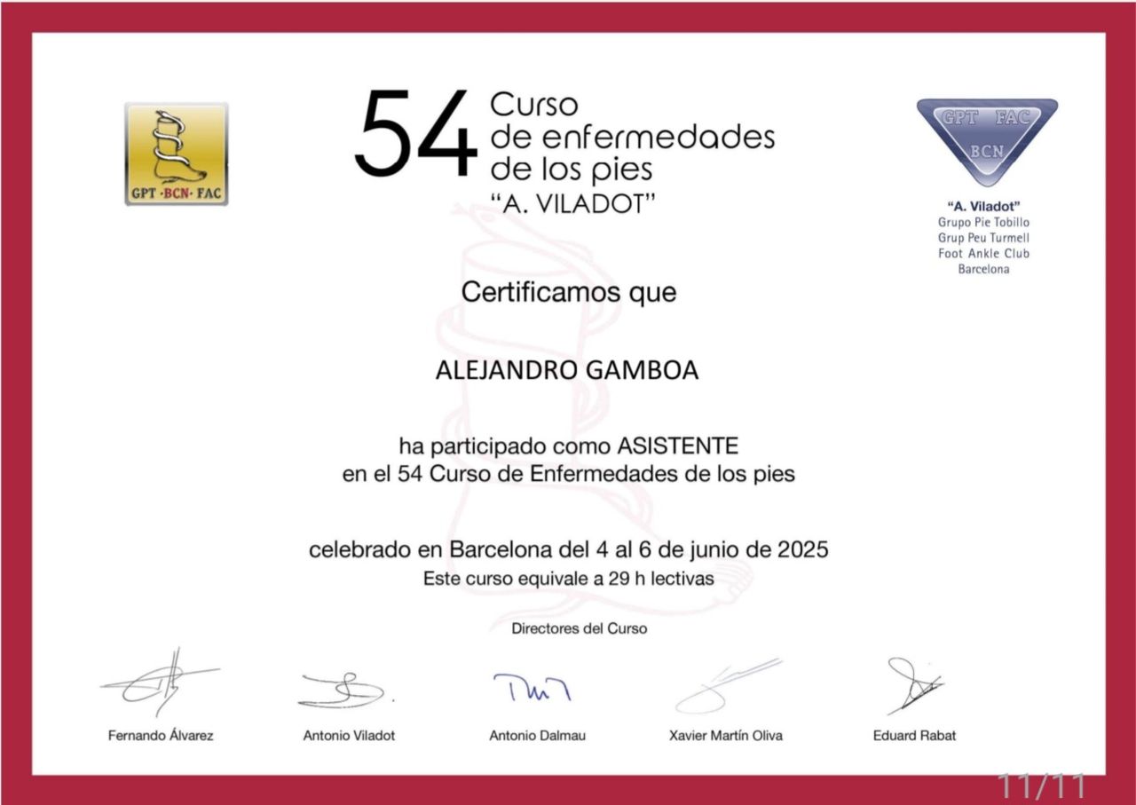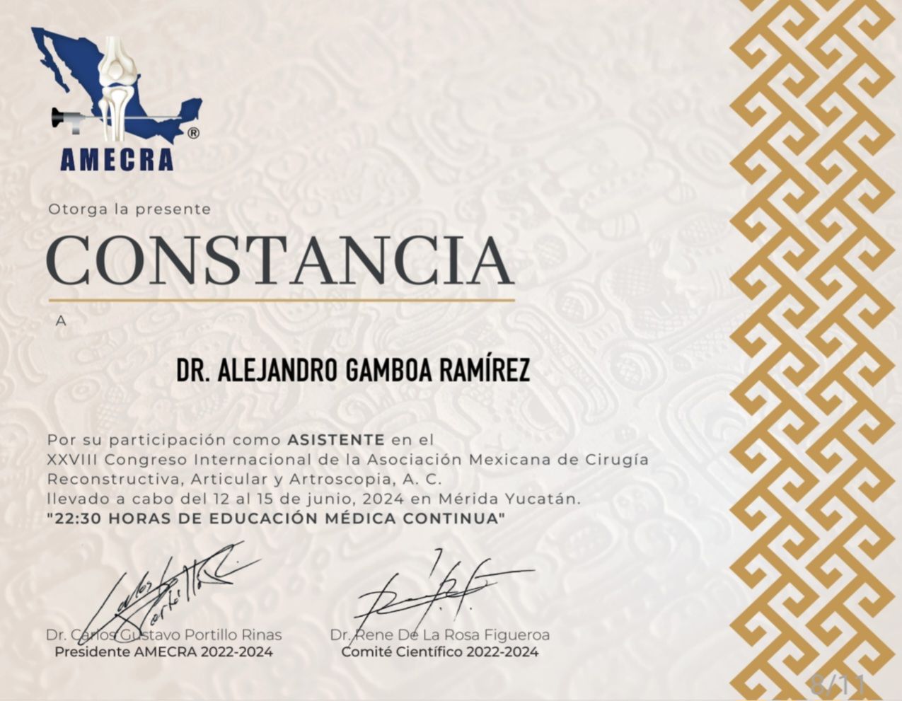 Soy Alejandro Gamboa Ramírez, médico cirujano formado en la Universidad Autónoma de Yucatán (UADY), institución donde también completé la especialidad en Ortopedia y Traumatología. Certificado por el Colegio Mexicano de Ortopedia y Traumatología (CMOT). Durante mi residencia desarrollé un interés particular por las patologías del pie y tobillo, lo que me llevó a realizar un entrenamiento especializado en Cirugía de Pie y Tobillo en España, avalado por la European Foot and Ankle Society.
