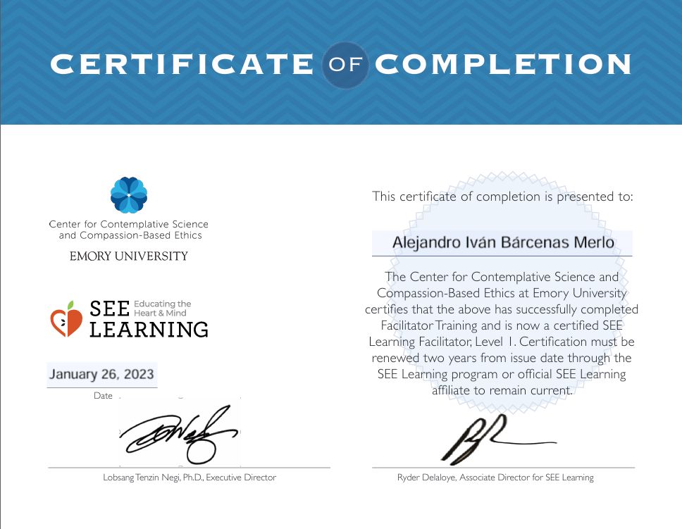 Soy licenciado en psicología por la Universidad Intercontinental UIC, cuento con un diplomado en Psicoterapia Sistémica en Familias por la Universidad Nacional Autónoma de México UNAM, un máster en Inteligencia Emocional y Psicología Positiva por la Universidad de Málaga (España) y una certificación en Entrenamiento Cognitivo Basado en Compasión (CBCT®) por la Universidad de Emory (EE. UU.).