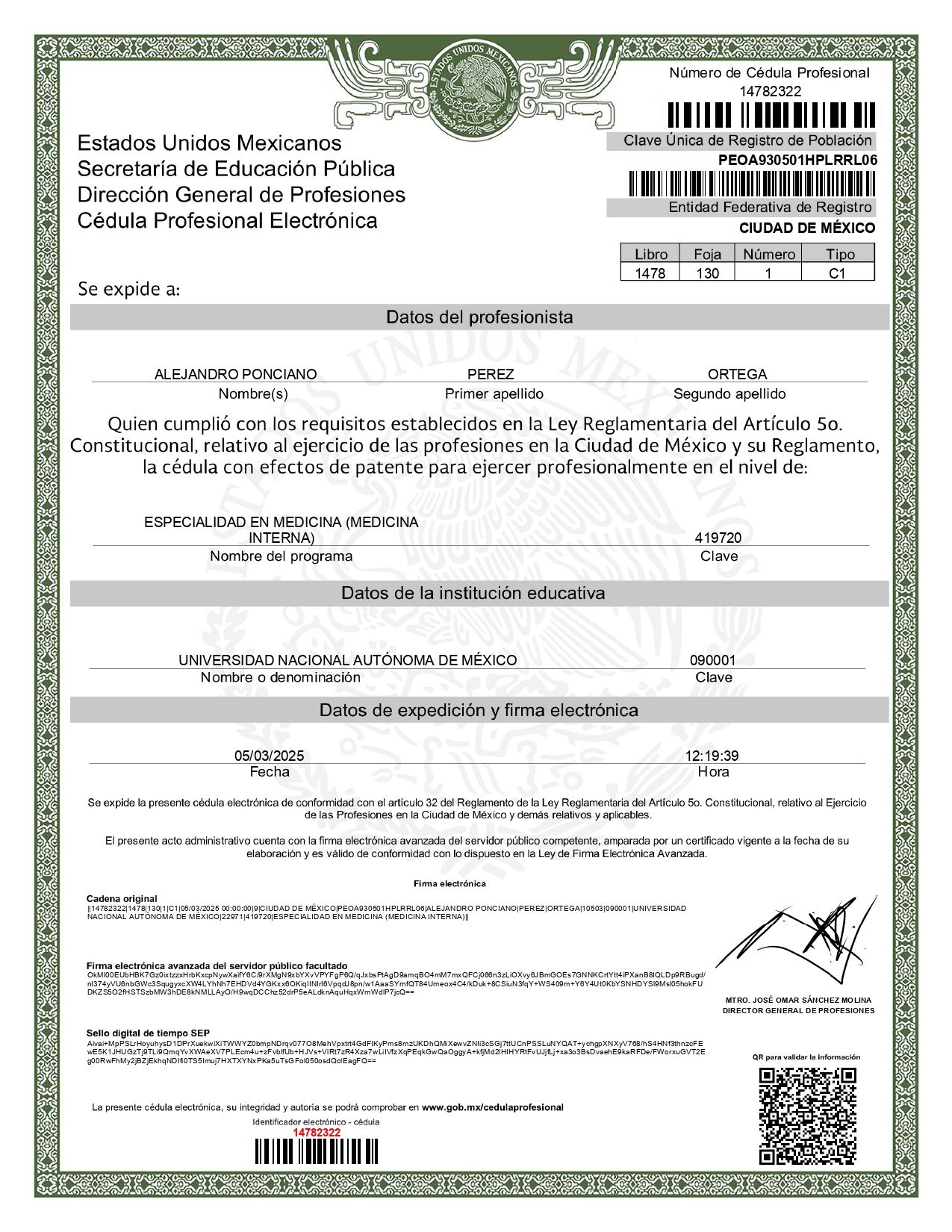Soy medico especialista en Medicina interna, egresado del Hospital de Especialidades del Centro Medico Nacional Siglo XXI avalado por la UNAM y certificado por el Consejo Mexicano de Medicina Interna.
