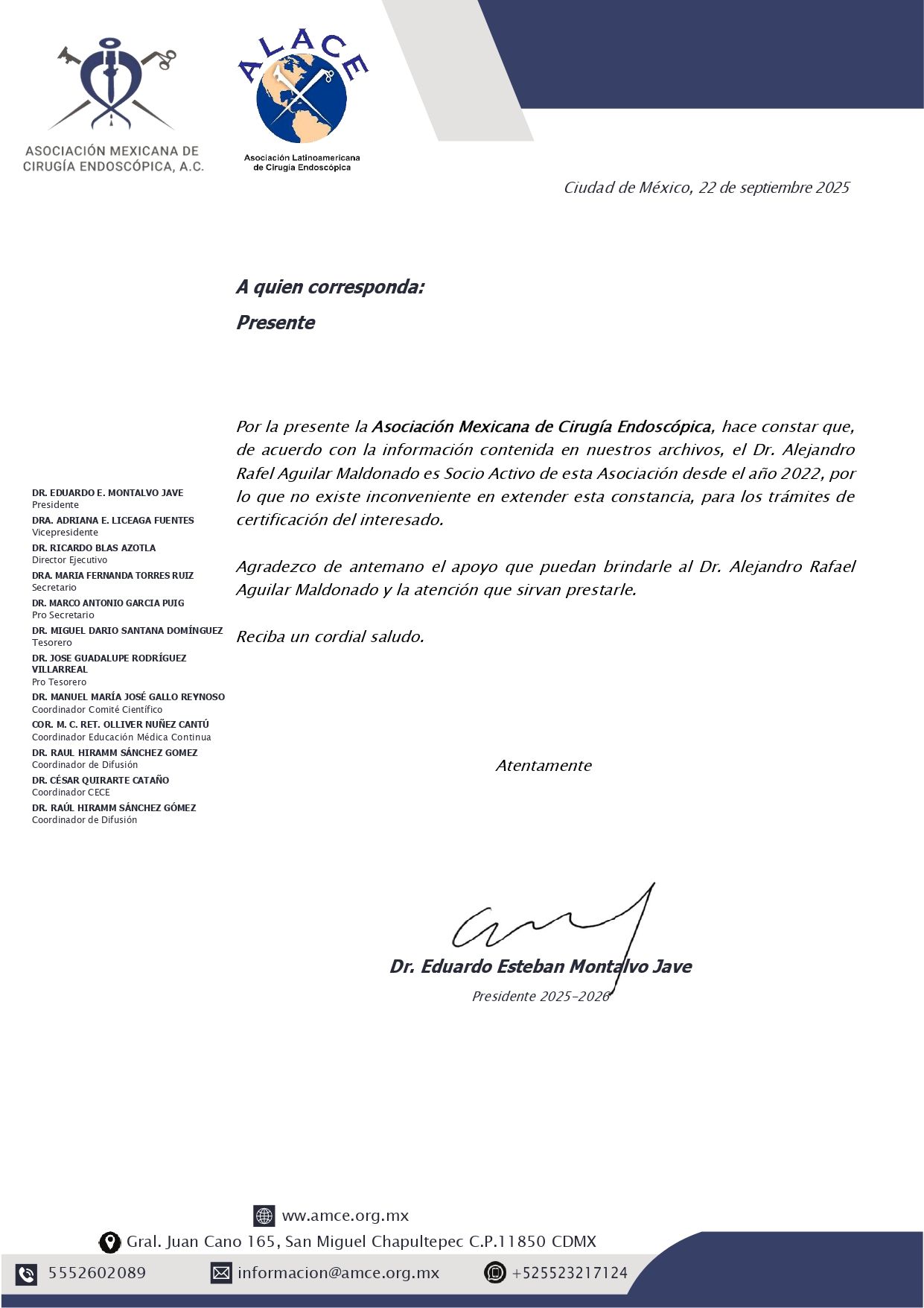Miembro activo de la Asociación Mexicana de Cirugía Endoscópica