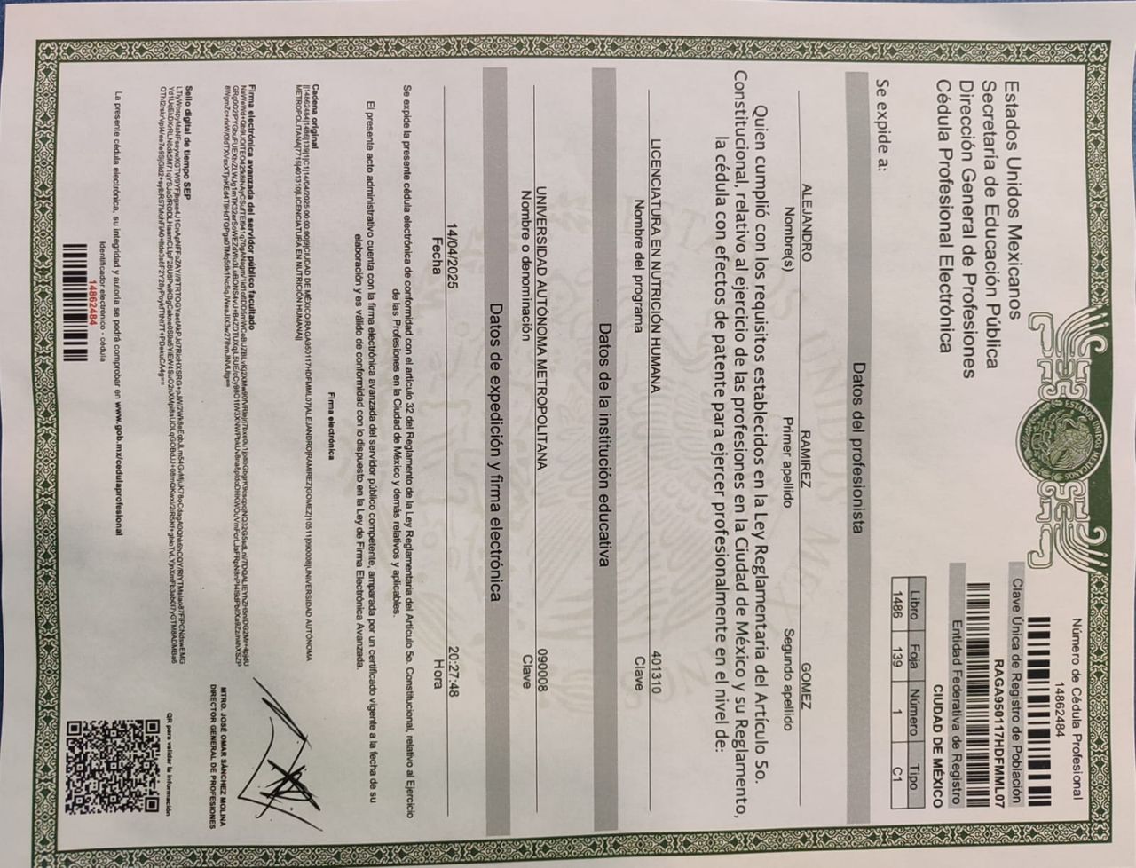 No. de cédula: 14862484