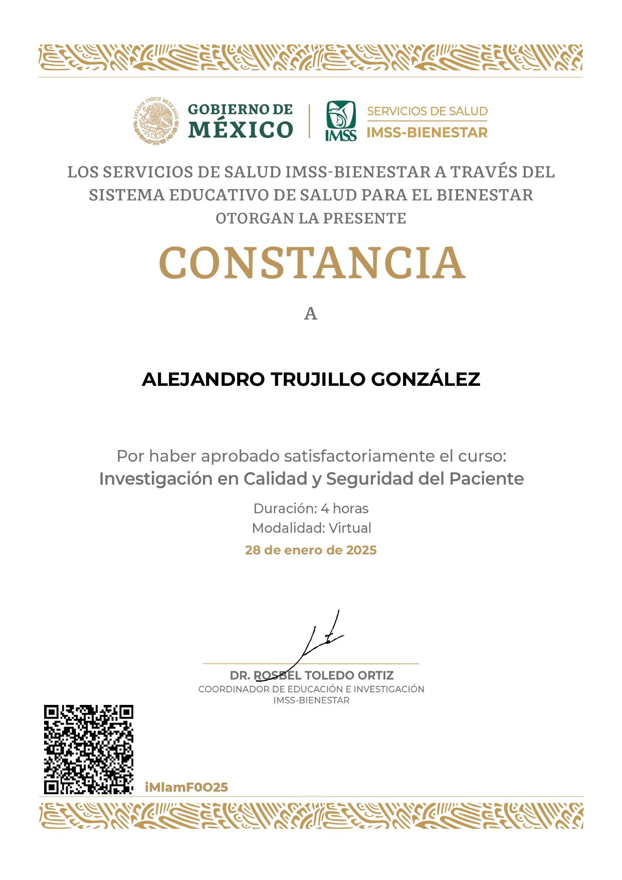 Hola, soy el doctor Alejandro Trujillo González, médico general egresado de la Universidad Autónoma de Guadalajara. Me enfoco en brindar una atención personalizada e integral a mis pacientes, desde la prevención hasta el tratamiento de enfermedades crónicas y agudas.