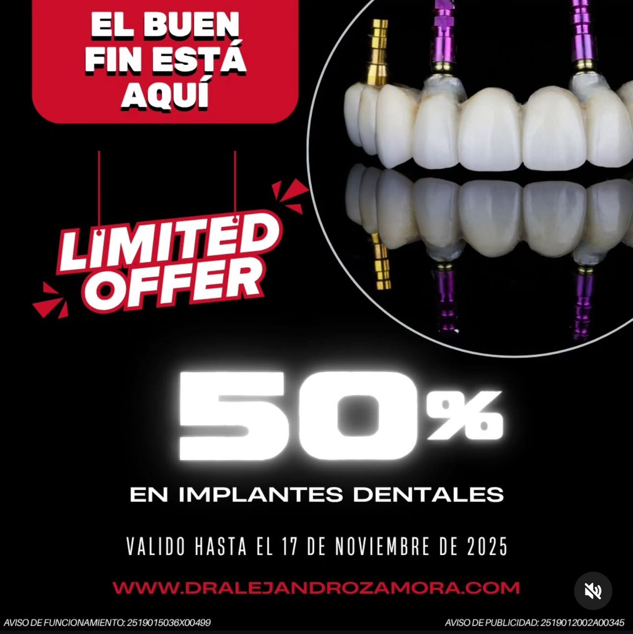 El buen fin está aquí! Esta SÚPER OFERTA, no va a regresar! Solo por tiempo limitado!! Sonríe y come con confianza! Por unos pocos días, tenemos la colocación de implantes a MITAD de precio.