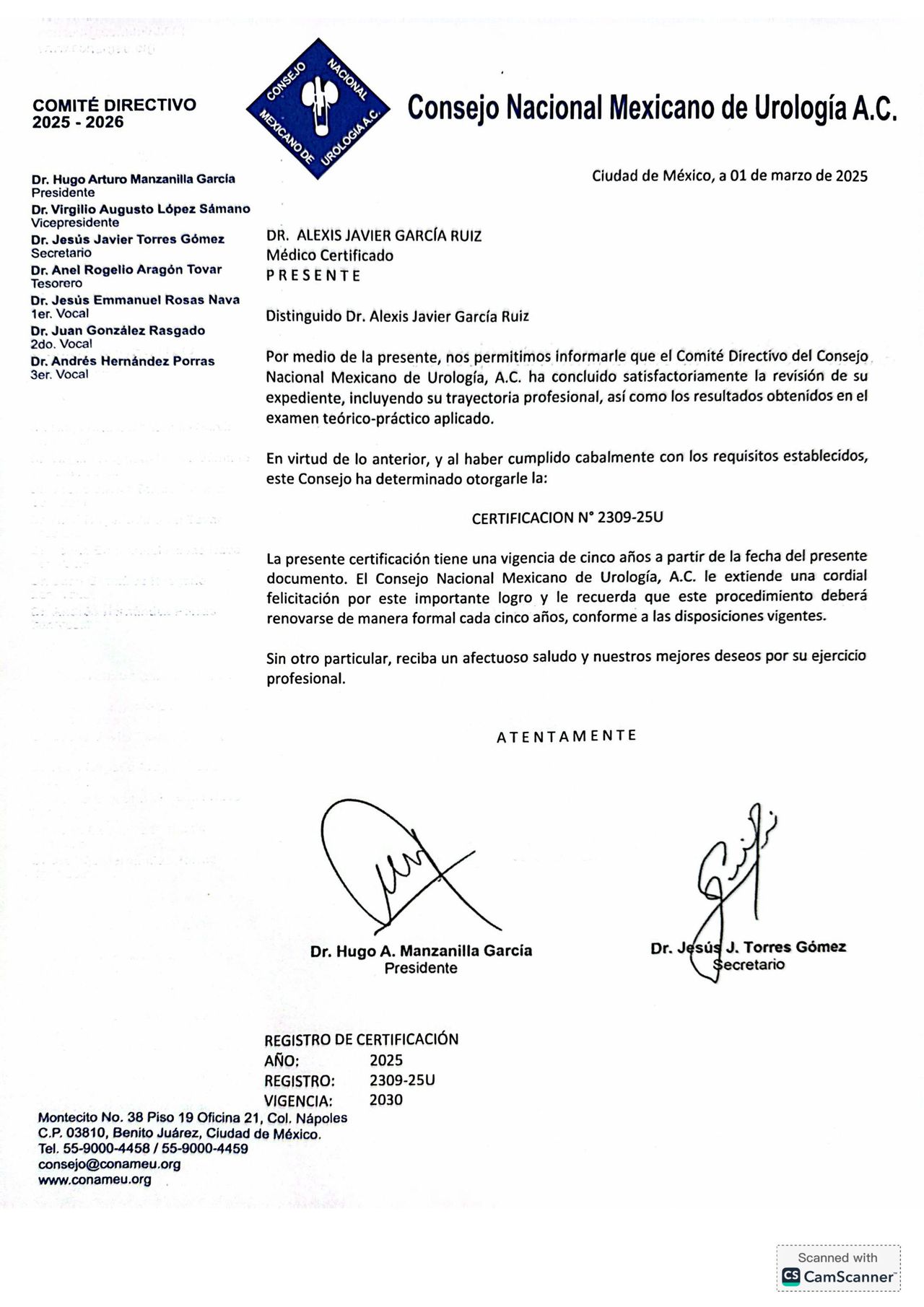 Consejo Mexicano de Urología. (2025-2030).