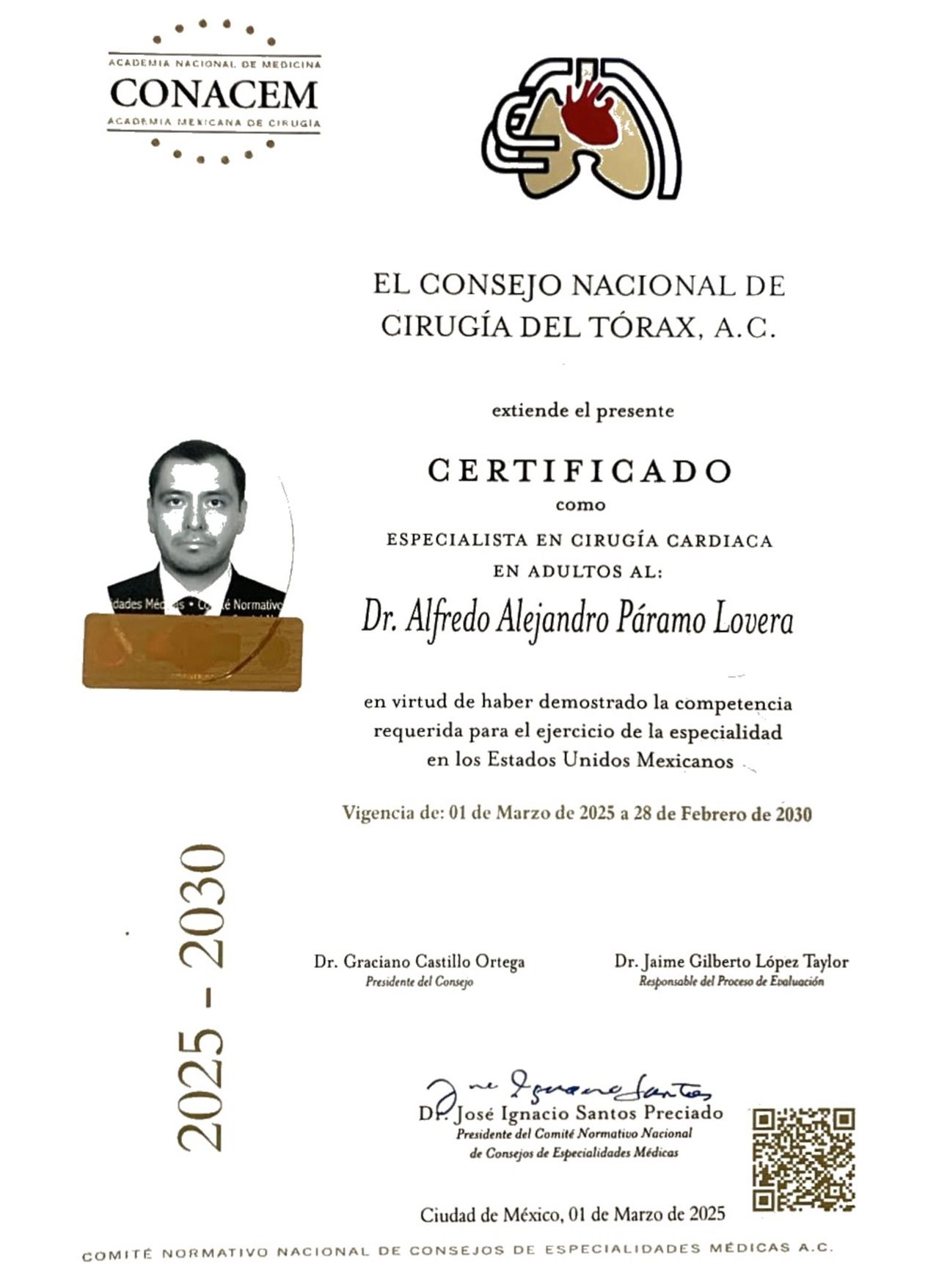 Hola, soy el Dr. Alejandro Páramo, cirujano cardiovascular y torácico, especializado en técnicas de mínima invasión y en el manejo integral de enfermedades del corazón y del tórax.