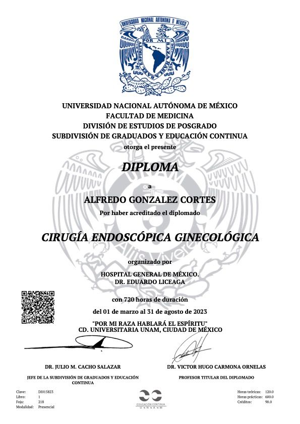 Soy el Dr. Alfredo González Cortés, especialista en Ginecología y Obstetricia egresado del Hospital General de México O.D. y tengo una sub especialidad en Medicina Materno Fetal egresado del Hospital Adolfo Lopez Mateos, I.S.S.S.T.E..