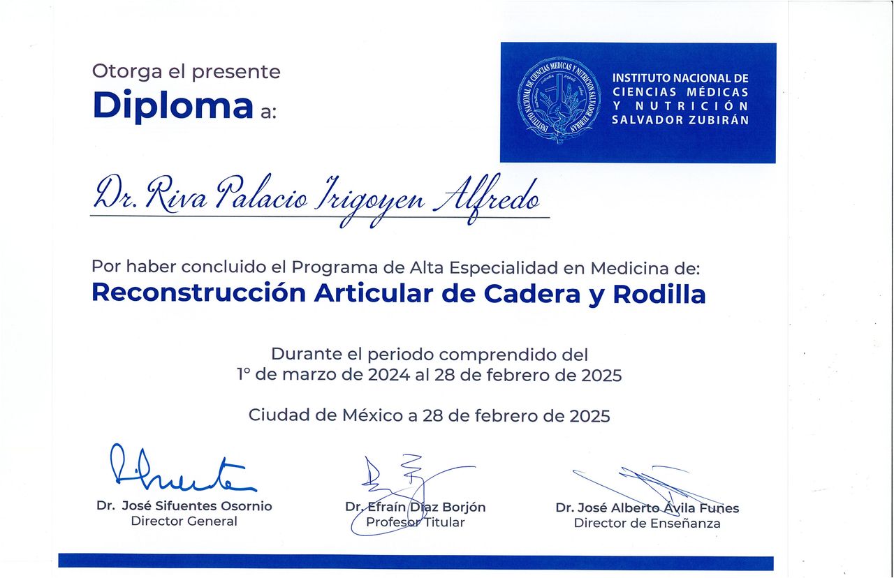 • Dr. Alfredo Riva Palacio, Ortopedia y Traumatología • Consulta de seguimiento •
