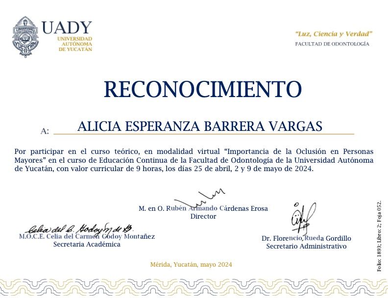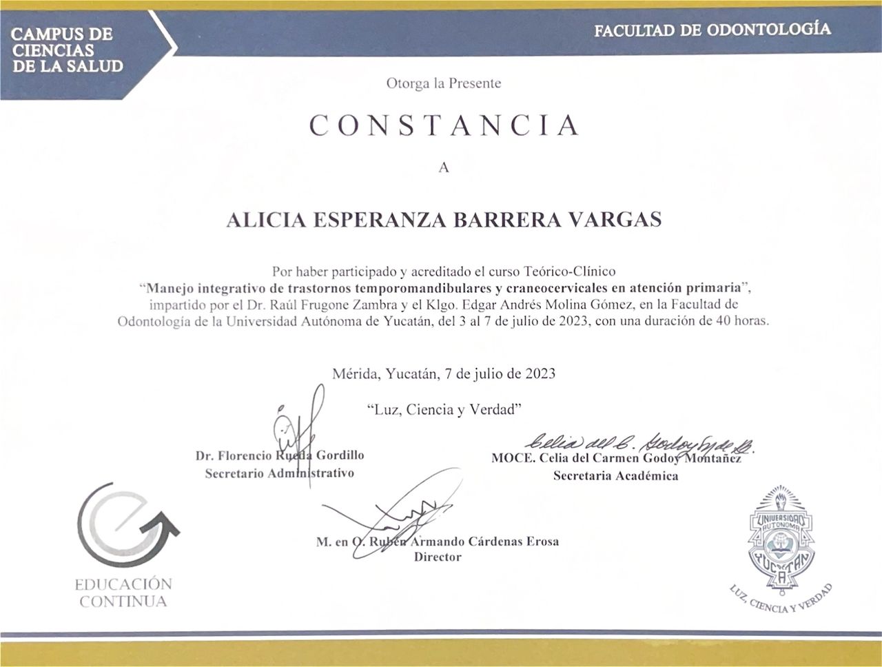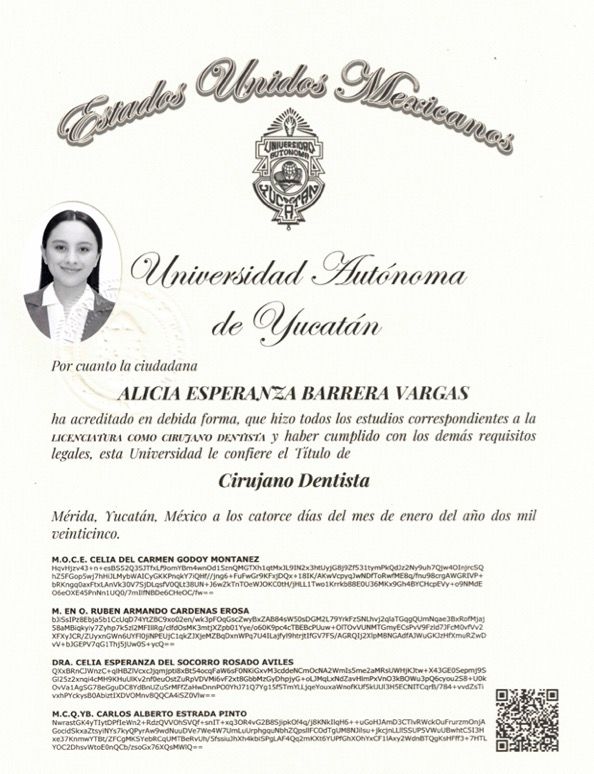 Hola, soy la Dra. Alicia, cirujano dentista egresada de la UADY, y mi compromiso es cuidar tu salud bucal de forma integral, funcional y cercana. Atiendo a niños, adolescentes y adultos, siempre con la intención de que cada persona se sienta escuchada, comprendida y acompañada.