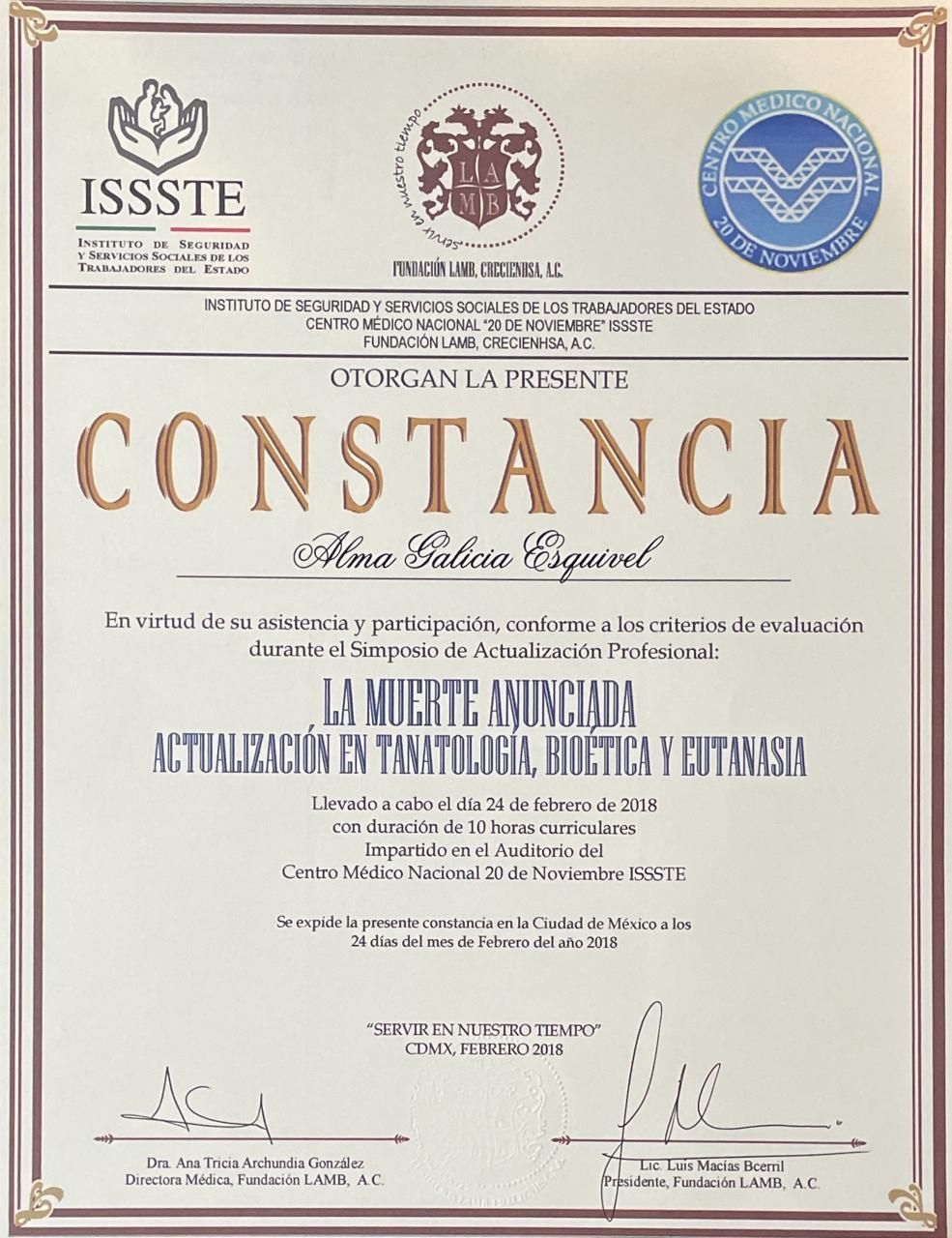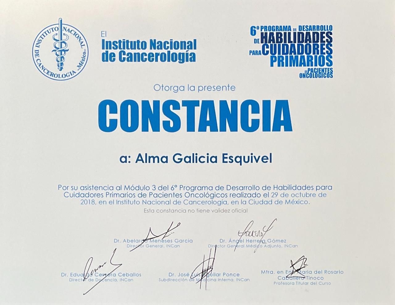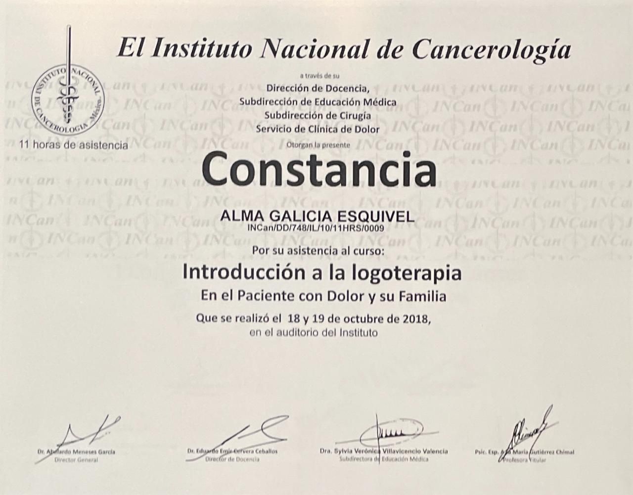 Soy licenciada en psicología clínica, egresada de la Universidad Latinoamericana, con Maestría en Psicooncología, egresada del Instituto Mexicano de Psicooncología, cuento con un Diplomado en Tanatología, otorgado por el Instituto Mexicano de Tanatología, asimismo, he tomado diversos cursos impartidos por importantes instituciones de salud.