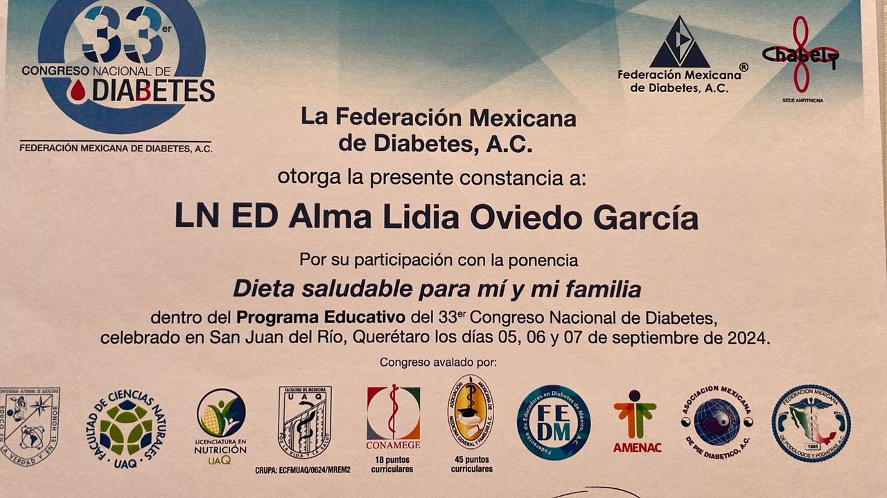 Soy Alma Oviedo, nutrióloga clínica egresada de la Universidad del Valle de Atemajac (UNIVA), campus Querétaro. Soy educadora en diabetes por la Universidad Autónoma de Querétaro (UAQ) y cuento con 10 años de experiencia en consulta privada.