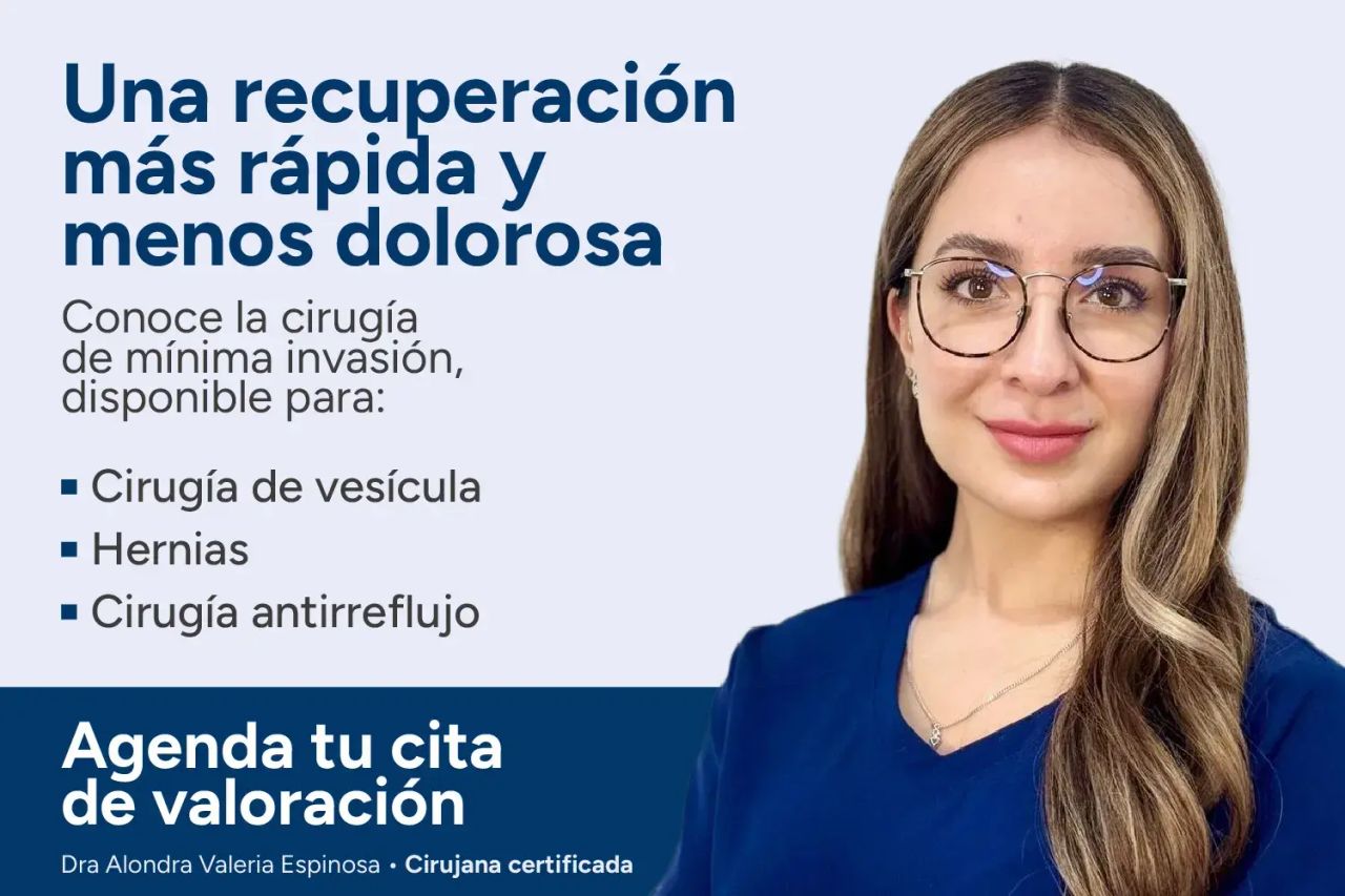 Soy la Dra. Alondra Valeria Espinosa, especialista en Cirugía Gastrointestinal y laparoscopía, avalada por la Universidad Juárez Autónoma de Tabasco (UJAT).
