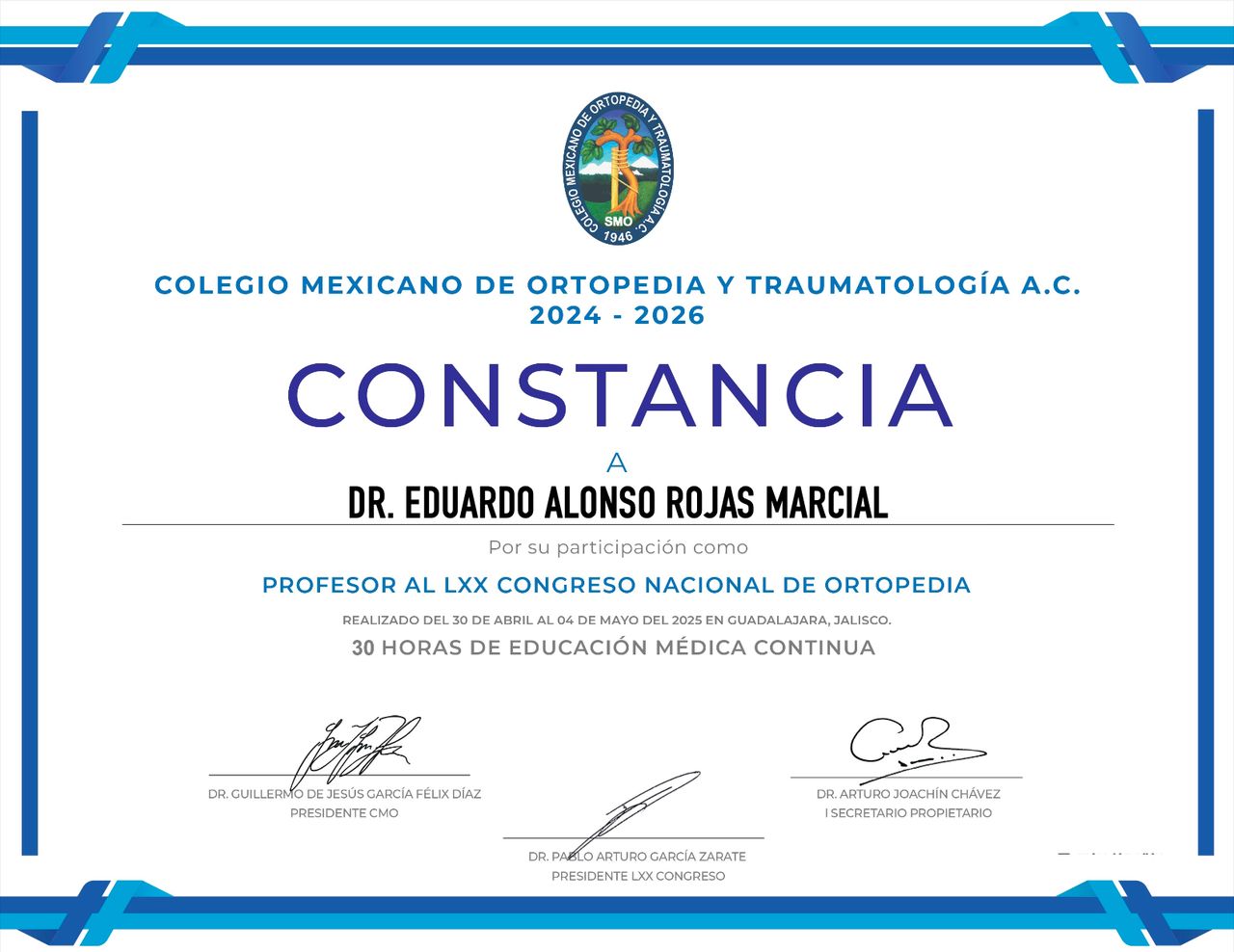 Mi pasión es ayudar a las personas a recuperar su movilidad y calidad de vida, combinando conocimientos de alto nivel con una atención cercana y humana. Soy médico egresado con honores de la Universidad Panamericana, especializado en Traumatología y Ortopedia en el Instituto Nacional de Rehabilitación, con aval de la UNAM. Más adelante, profundicé mi formación con una Alta Especialidad en Cirugía Articular en el Instituto Nacional de Ciencias Médicas y Nutrición Salvador Zubirán, ademas de contar con entrenamiento y estar certificado para cirugía robótica.