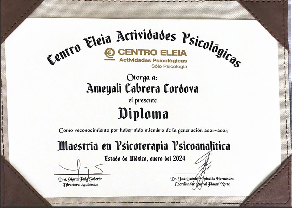 Soy licenciada en Psicología y maestra en Psicoterapia Psicoanalítica por el Centro ELEIA. Me especializo en psicoterapia breve focalizada con enfoque psicoanalítico y perspectiva de género. Con más de cuatro años de experiencia clínica, académica e institucional, acompaño a adolescentes y adultos en procesos relacionados con ansiedad, depresión y conflictos emocionales, apoyándome en pruebas proyectivas para una comprensión más profunda.