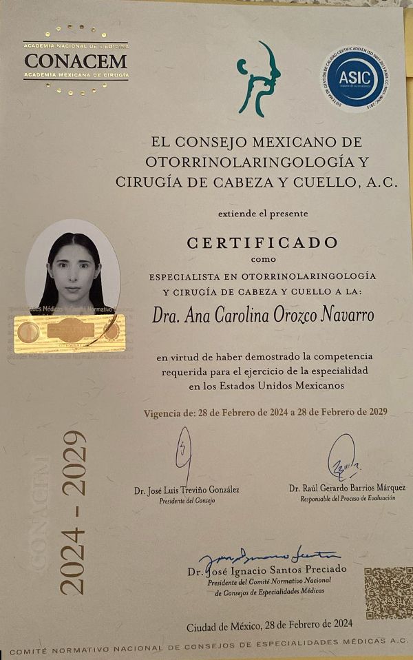 Conocí a la Dra gracias a recomendaciones de amigos, llevé a mi mamá a revisión ya que ningún médico había podido ayudarnos a resolver un problema de su garganta desde hace años, ella fue muy profesional, puntual, minuciosa en su interrogatorio y exploración física. Gracias a la dra Carolina al fin tuvimos un diagnóstico certero para mi mamá, un muy buen tratamiento y al final ella pudo recuperar su calidad de vida. Mi nueva otorrinolaringologa de confianza.