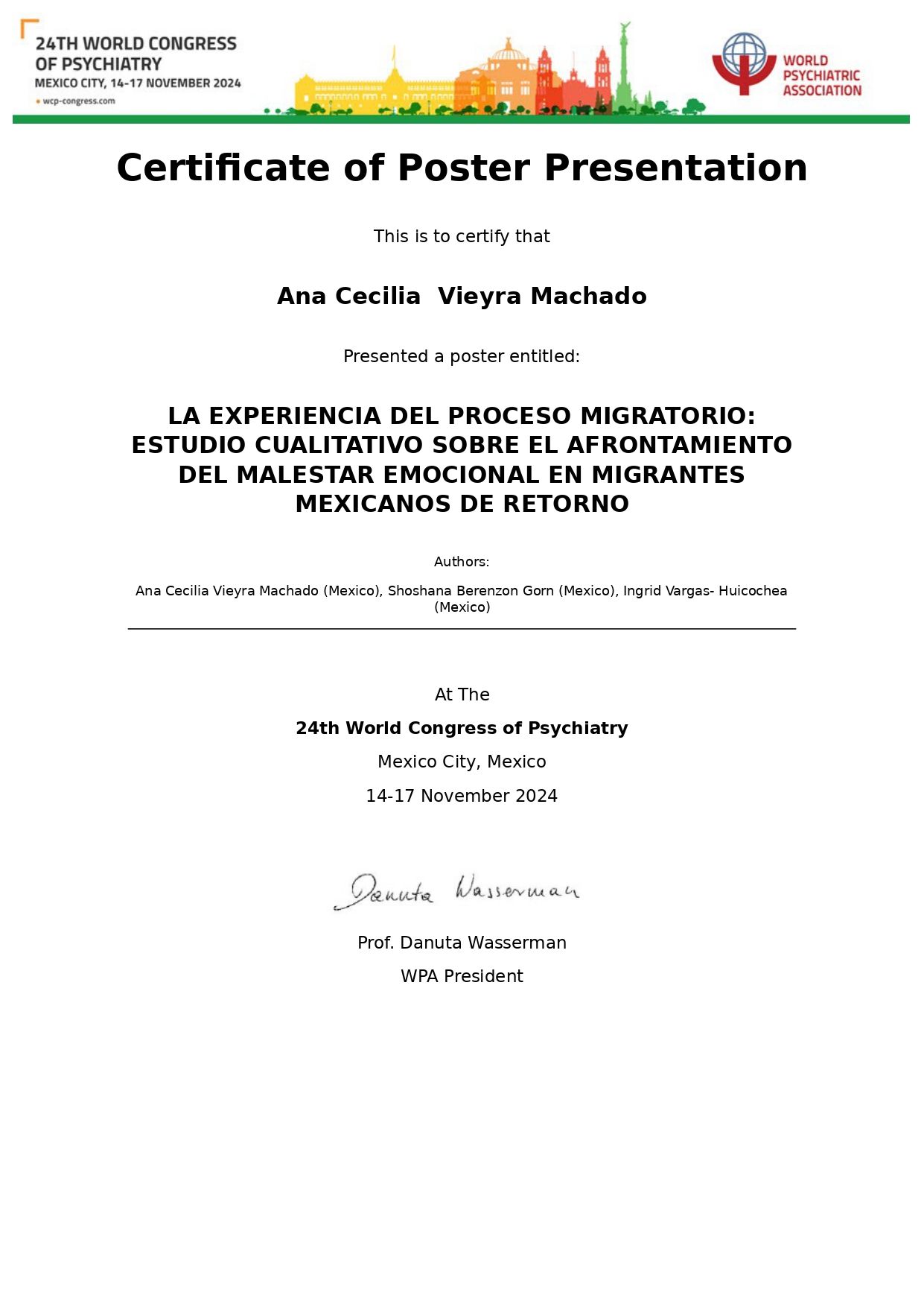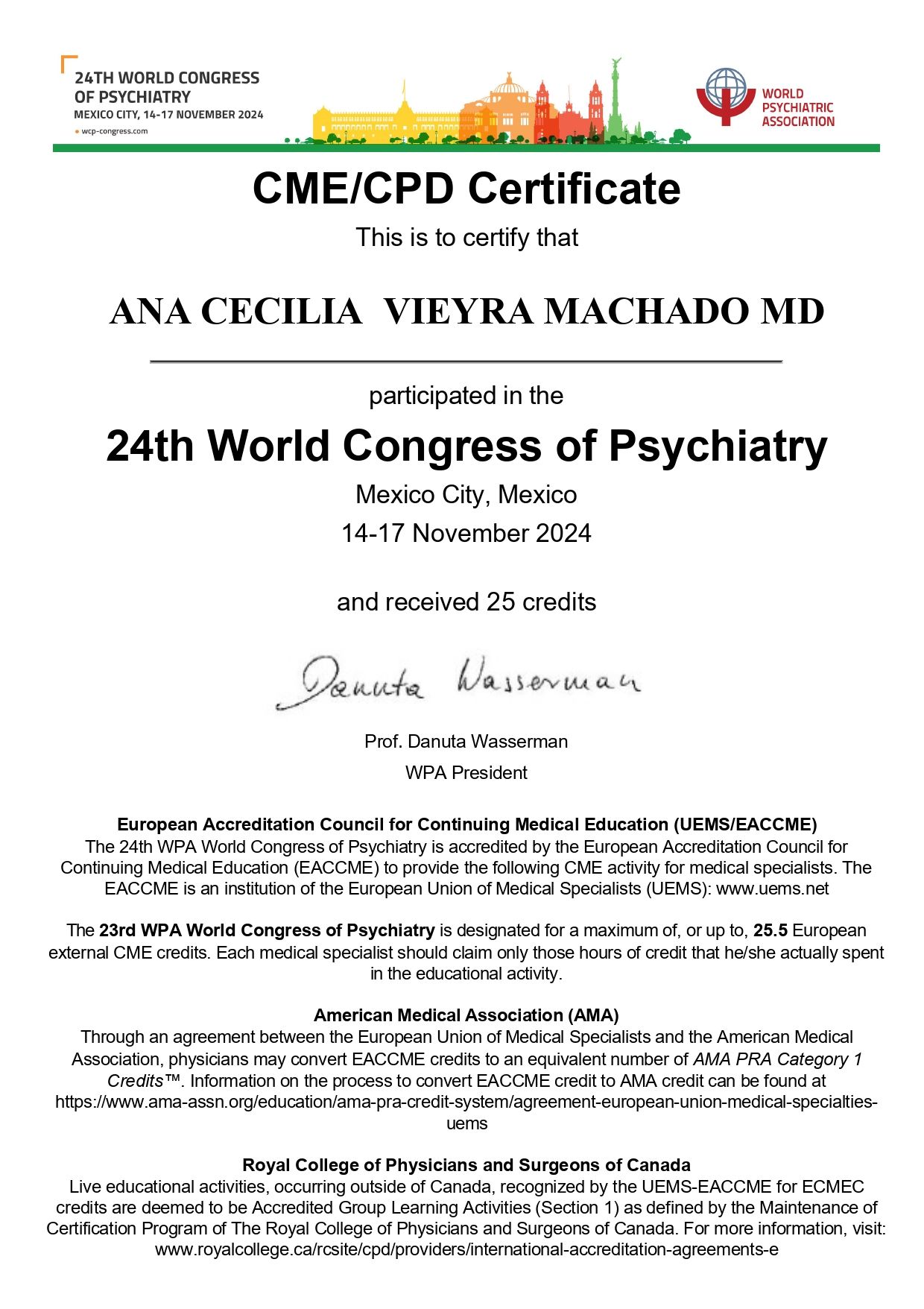 Hola, soy Cecilia Vieyra. Estudié medicina en la Facultad de Medicina de la UNAM. C.U; realicé mi especialidad de Psiquiatría en el Instituto Nacional de Psiquiatría y me formé como psicoterapeuta en terapia dialéctico conductual (DBT) y en terapia de exposición narrativa (NET).