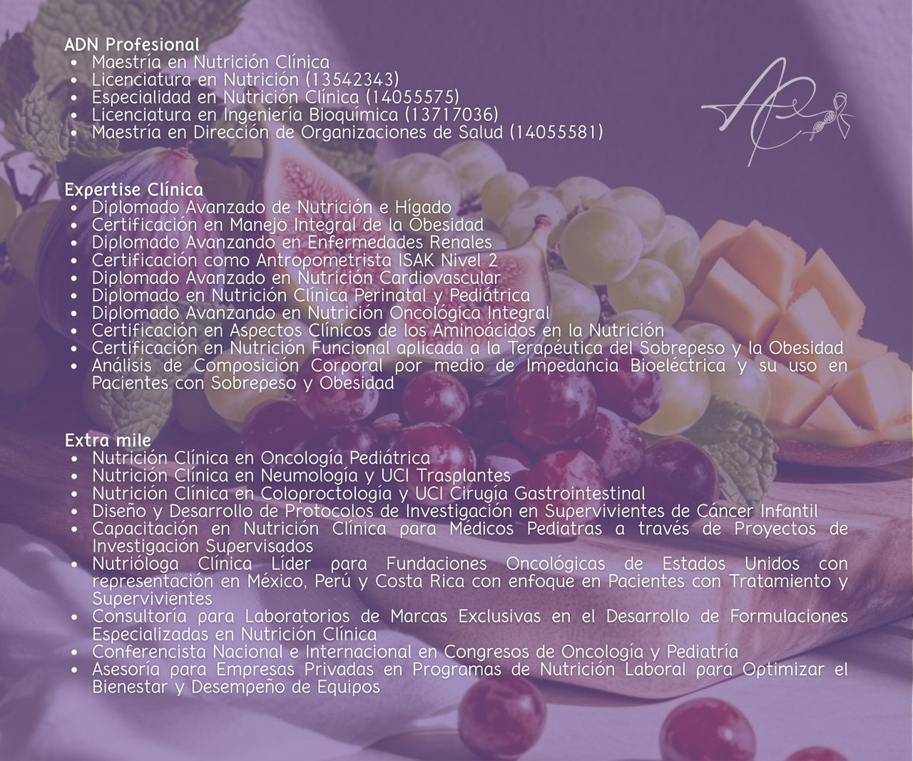Estoy profundamente agradecida por la excelente atención y apoyo brindado por la Nutricionista Especializada en Oncología durante mi tratamiento contra el Cáncer de mama.