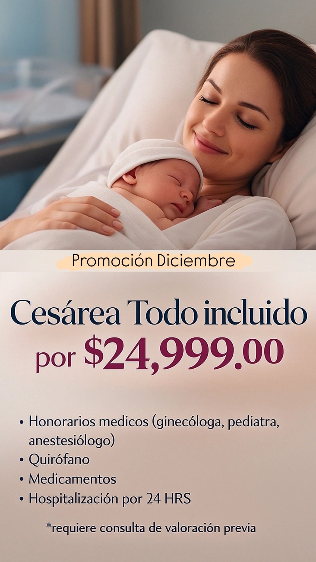 Este mes contamos con nuestro paquete de Cesárea Todo Incluido por $24,999.00, que contempla: