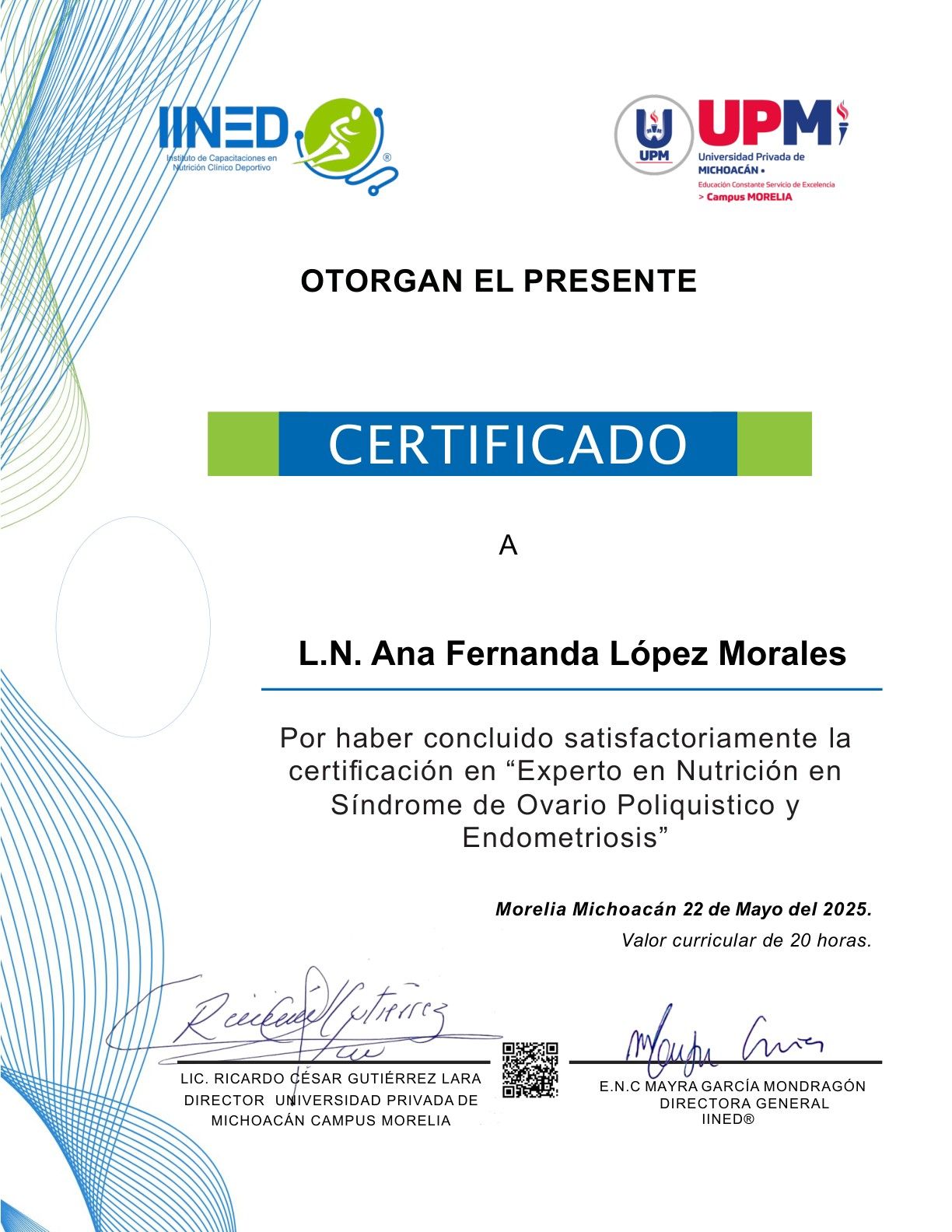 ¡Hola! Soy Ana Fernanda López, especialista en nutrición. Atiendo a personas de 15 a 70 años en San Pedro Garza García, de forma presencial y en línea. Trabajo con ciencia, cercanía y cero juicios para que comer mejor sea posible en tu día a día.