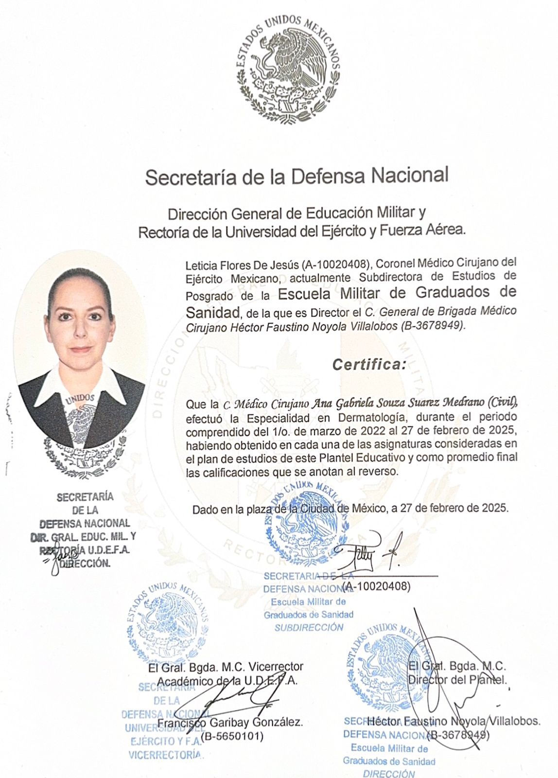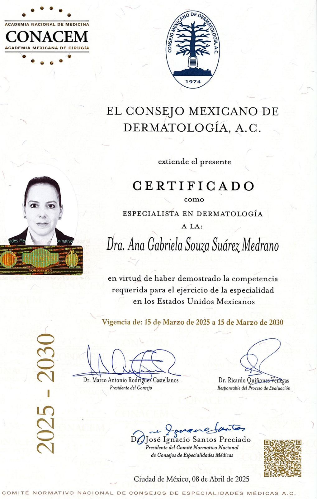 Soy médica especialista en Dermatología, además con Especialidad en Medicina Interna, lo que me permite ofrecer un enfoque integral en el cuidado de la piel, no solo en cuestión estética, sino considerando siempre la salud general del paciente.